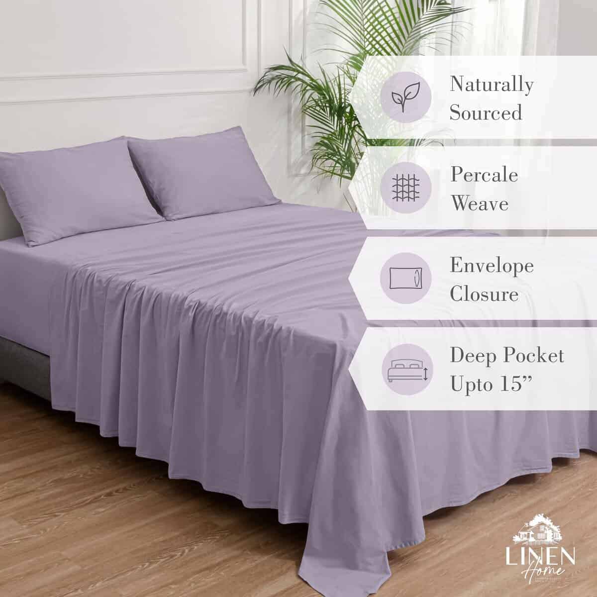 5. Lavar Fácilmente, Confort Duradero: Di adiós a la molestia de rutinas de cuidado complicadas. Con los sets de sábanas de percal de Linen Home, cuidar tu ropa de cama es pan comido. Estas sábanas son aptas para lavar a máquina y resistentes a la decoloración, garantizando que mantengan sus colores vibrantes y calidad con el tiempo. Nuestras sábanas de algodón de alta calidad están diseñadas para soportar lavados frecuentes, brindándote durabilidad duradera sin comprometer la comodidad. Disfruta de la combinación perfecta de comodidad y practicidad.