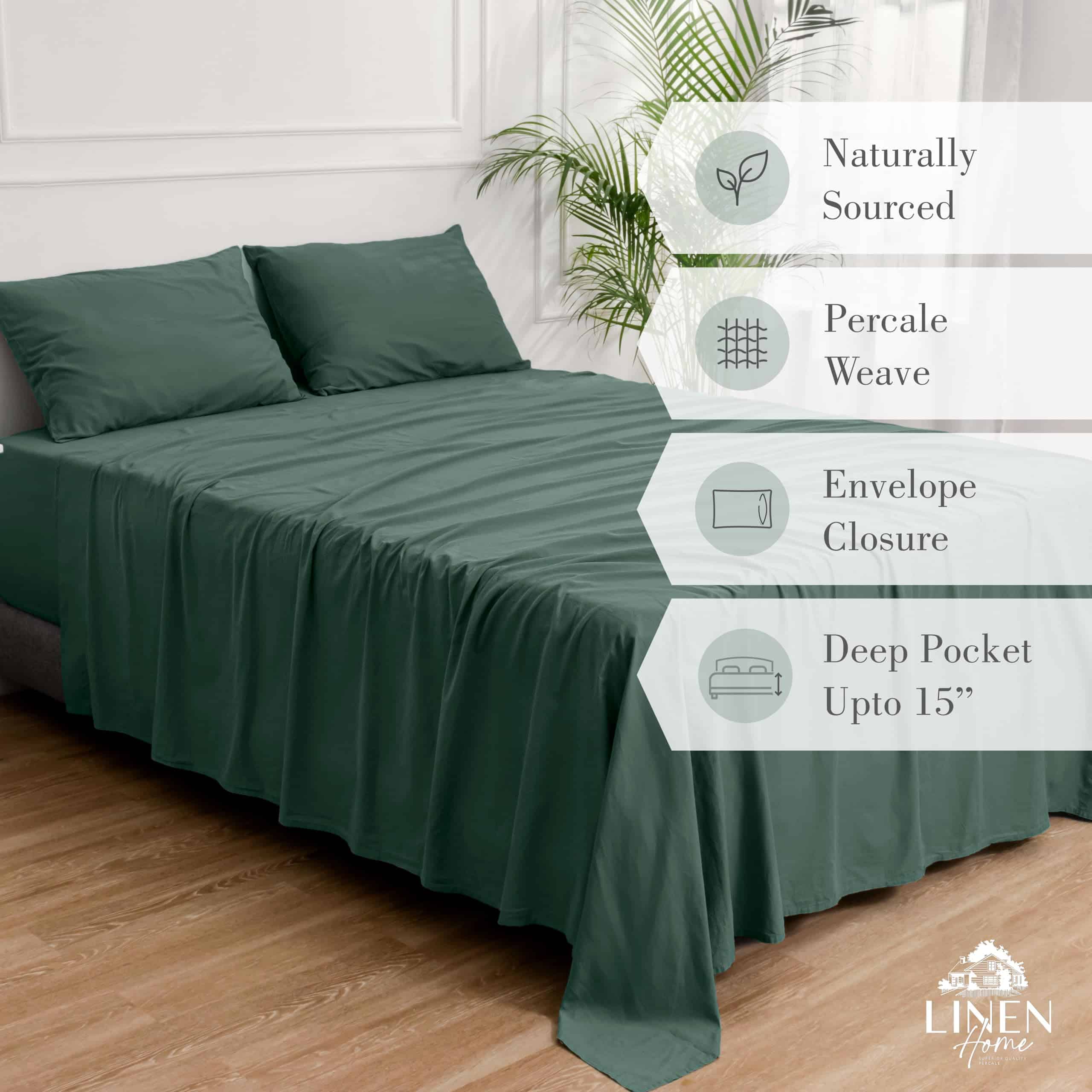 Descubre la comodidad y conveniencia en nuestras sábanas expertamente diseñadas para tu cama. La sábana ajustable con bolsillos profundos y elástico se ajusta a colchones de hasta 15″, asegurando un ajuste perfecto. Este set queen incluye una sábana plana (90″X102″), una sábana ajustable (60″X80″+14″) y 2 fundas de almohada con cierre de sobre (21″X30″). Con un acabado de doble costura de dobladillo en la sábana plana y fundas de almohada, disfruta de durabilidad y una sensación exclusiva. Las fundas de almohada cuentan con un cierre de sobre para un aspecto pulido. En Linen Home, la calidad es primordial: Nuestras sábanas de algodón percal se someten a pruebas rigurosas para garantizar que no haya formación de bolitas, baja contracción, durabilidad ante desgarros, precisión del recuento de hilos y alta solidez del color. Cada pieza del juego de sábanas es inspeccionada meticulosamente por nuestro equipo de control de calidad para garantizar calidad superior. Diseñadas para tu sueño acogedor y extra cómodo, estas sábanas preencogidas están fabricadas en una fábrica ‘Made in Green’, garantizando que estén libres de mezclas dañinas. Experimenta una calidad superior y duradera. Perfecto para regalar: Estos juegos de sábanas de algodón lavado vienen bellamente empaquetados en una bolsa de tela, añadiendo un toque extra de elegancia a tu regalo, convirtiéndolos en una opción ideal para regalar durante todo el año. Ya sea para primavera, verano, o cualquier ocasión, son un regalo considerado y versátil. La satisfacción del cliente es nuestra principal prioridad, nos esforzamos por proporcionar una experiencia sin complicaciones con nuestra Política de Devolución de 30 Días sin Preguntas y compartir una solución e información que necesites en un plazo de 24 horas. Cuidado de lavado sin esfuerzo, confort duradero: Di adiós a la molestia de complejas rutinas de cuidado. Con los juegos de sábanas de percal Linen Home, cuidar tu ropa de cama es pan comido. Estas sábanas de cama son lavables a máquina y resistentes a la decoloración, asegurando que mantengan sus colores vibrantes y calidad con el paso del tiempo. Nuestras sábanas de algodón de alta calidad están diseñadas para resistir lavados regulares, brindándote una durabilidad duradera sin comprometer la comodidad. Disfruta de la combinación perfecta de comodidad y practicidad.