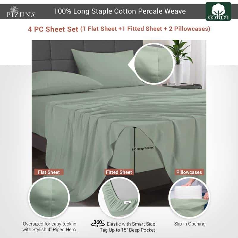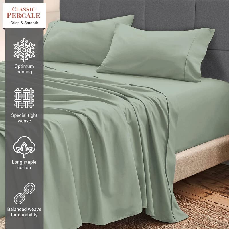 Juego de sábanas de algodón percal Queen Size -Sea Foam