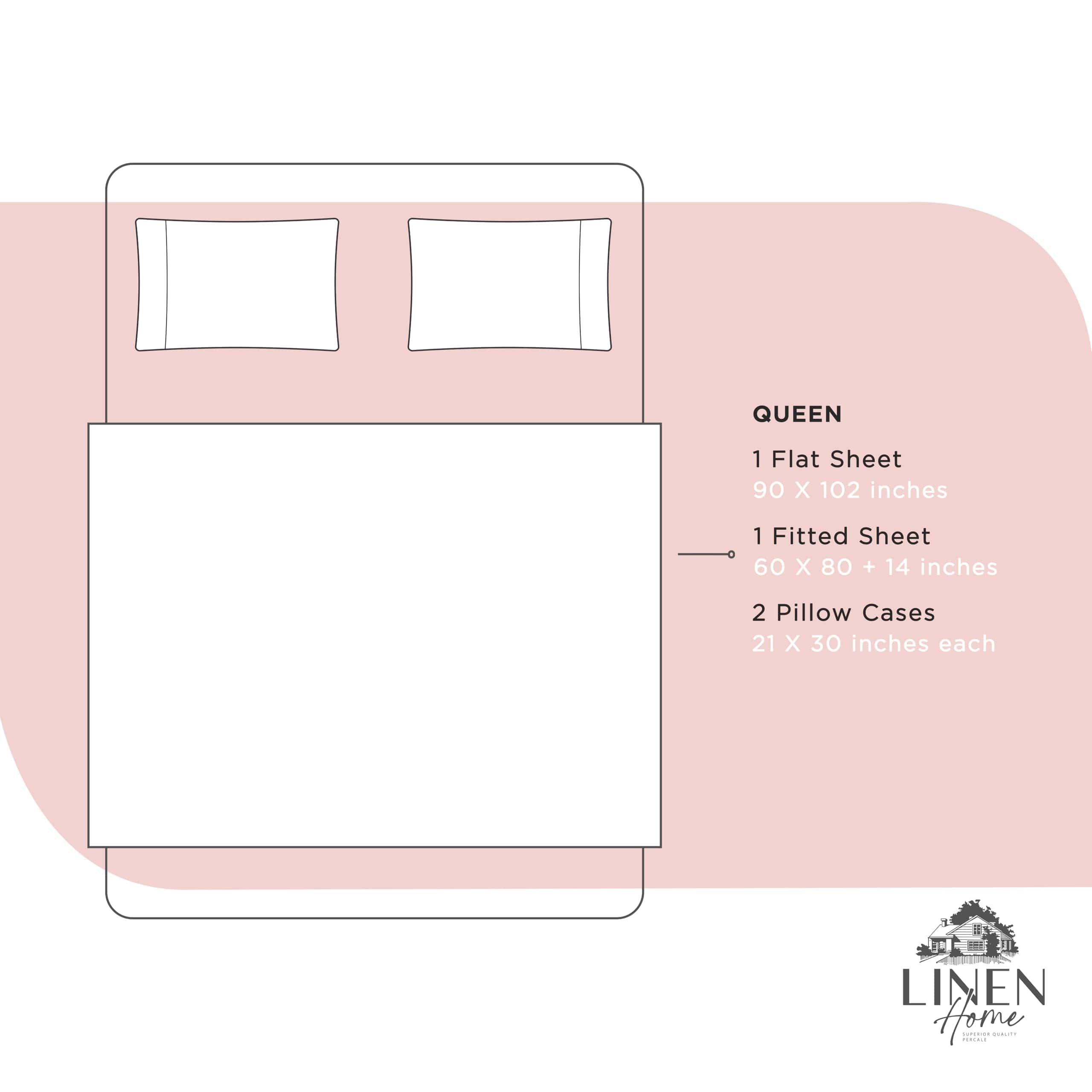 Juego de Sábanas de Algodón Percale 100% Queen Size, Rosa