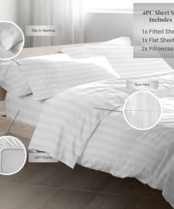 Este juego de sábanas de algodón Pizuna en tamaño queen es el epítome del lujo y la comodidad. Hecho de 100% de algodón peinado de primera calidad con un tejido de satén, este juego de sábanas es suave, fresco y ligero en la piel. Con una cuenta de 300 hilos, estas sábanas de algodón están diseñadas para mantenerte fresco durante la noche al absorber la humedad y regular la temperatura corporal. La costura patentada en la sábana ajustable garantiza un ajuste firme en tu colchón, mientras que las fundas de almohada con ribete de 4″ añaden un toque de elegancia a tu cama.
