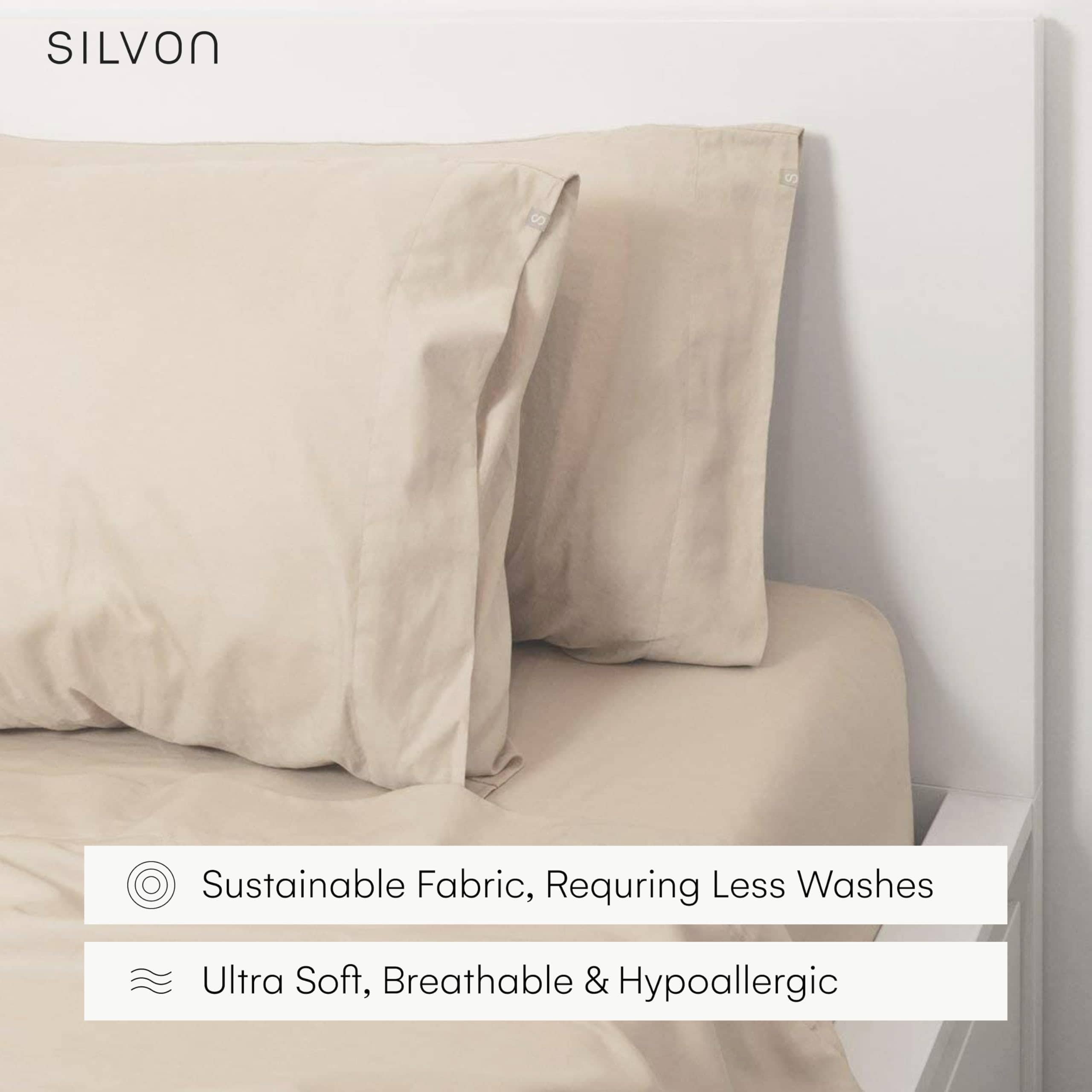 5. Lujo supremo: Nuestro juego de sábanas de lujo de 300 TC incluye 1 sábana ajustable, 1 sábana plana y 2 fundas de almohada. Disfruta de la suavidad suprema, el recuento de hilos amigable con la piel y el ajuste perfecto de las sábanas Silvon.