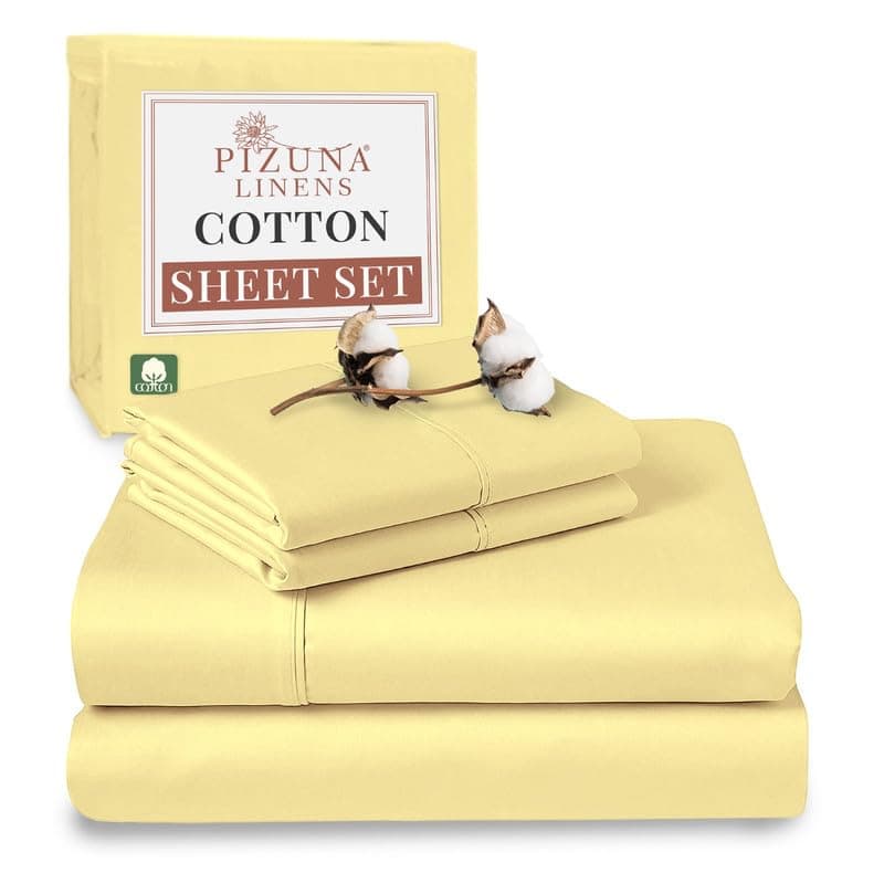 Juego de sábanas de algodón Puro 100% tamaño -Amarillo Suave