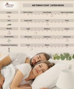 Este juego de sábanas de alta calidad de Pizuna está hecho con algodón puro de fibra larga de 400 hilos, que ofrece una sensación suave y fresca al tacto. Diseñadas para una comodidad excepcional, estas sábanas king size están hechas para brindar una experiencia de sueño de lujo. La sábana plana king size y la sábana ajustable con bolsillo profundo están diseñadas con una costura patentada para un ajuste perfecto en colchones de 8 a 15 de grosor. Las fundas de almohada king tienen un elegante dobladillo en pipa de 4″ que añade un toque de estilo a tu cama. El auténtico algodón peinado mercerizado de calidad premium hace que estas sábanas sean suaves, resistentes y transpirables. Además, el tejido suave y resistente a las arrugas se vuelve aún más suave con cada lavado. Certificado por OEKO-TEX y libre de AZO, este juego de sábanas king size es seguro para toda la familia y para el medio ambiente. Disponible en una amplia gama de colores y tamaños, este juego de sábanas de algodón de Pizuna es la elección perfecta para un sueño reparador y un descanso tranquilo. Aprovecha la calidad premium de Pizuna y disfruta de un sueño de lujo todas las noches.
