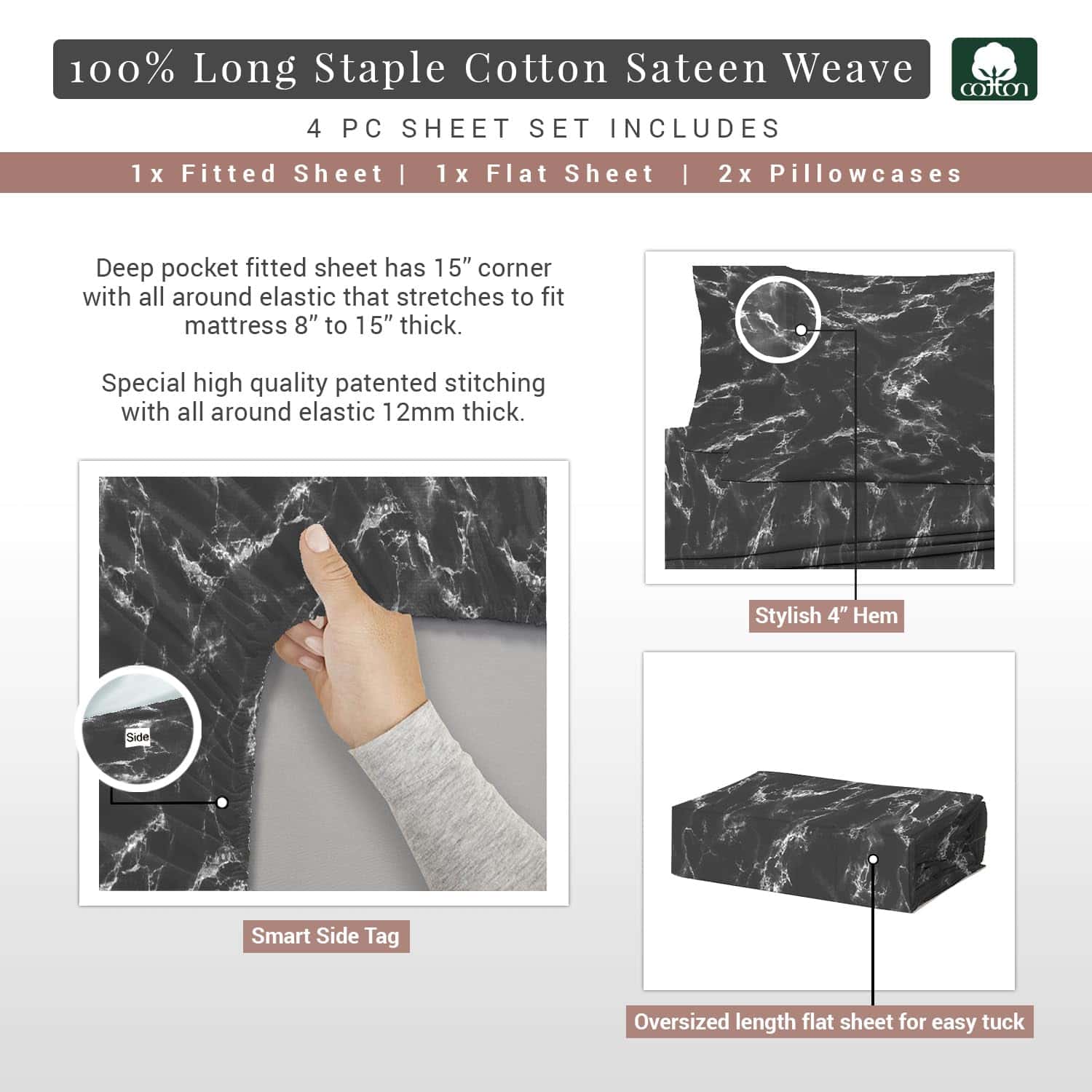 Juego de sábanas de algodón puro Pizuna Full -Negro mármol