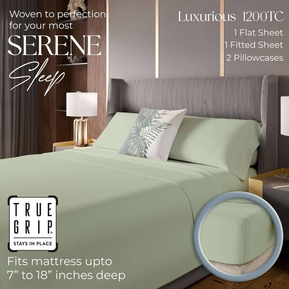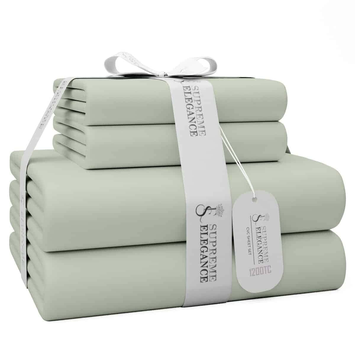 Juego de sábanas de algodón rico de 1200 -Verde Pastel