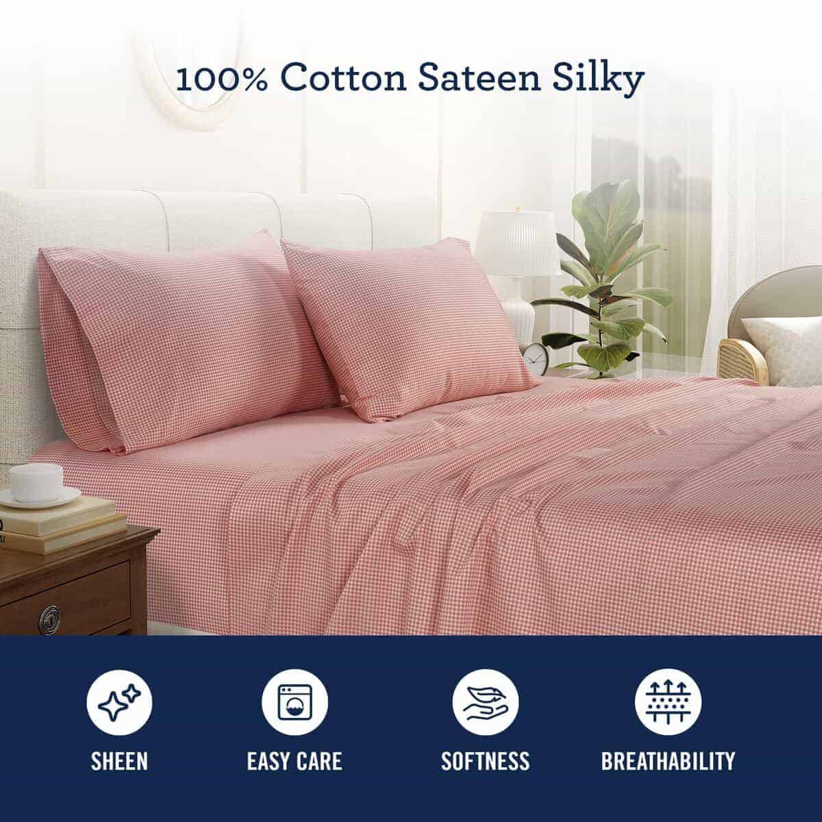 Sábanas de Algodón Sateen de IZOD Confort y Estilo Intemporales para una Noche de Sueño Perfecta Un buen descanso es esencial para despertar renovado, y todo comienza con las sábanas perfectas. Las Sábanas de Algodón Sateen de IZOD están diseñadas para transformar tu experiencia de sueño, ofreciendo una combinación inigualable de comodidad, durabilidad y estilo, estas sábanas proporcionan una sensación suave y sedosa con un brillo sutil, asegurando un entorno de sueño lujoso y transpirable todas las noches. La sábana ajustable completamente elástica garantiza un ajuste seguro, evitando deslizamientos y manteniendo tu ropa de cama en su lugar. Disponibles en tamaños Twin, Twin XL, Full, Queen y King, estas sábanas se adaptan a todas las dimensiones de colchones. Elige entre una sofisticada selección de Rayas Grises, Rayas Beige, Mosaico Verde, Mosaico Rosa, Gingham Azul, Gingham Rojo, Blanco, Topo, Salvia y Gris para combinar con cualquier decoración de dormitorio, desde clásica hasta contemporánea. Grupo Auténtico de Sábanas IZOD Un Legado de Confort y Estilo Con una rica herencia de ofrecer un estilo americano clásico y artesanía de calidad, las Sábanas Auténticas del Grupo IZOD redefinen la elegancia cotidiana. Inspiradas en la icónica marca IZOD, estas sábanas combinan diseños intemporales con funcionalidad moderna. Diseñadas para aquellos que aprecian tanto la comodidad como el estilo, las sábanas IZOD están diseñadas para mantener su suavidad, colores vibrantes y sensación nítida lavado tras lavado. Lavables a máquina para un cuidado sin esfuerzo, estas sábanas son perfectas para uso diario, ofreciendo durabilidad sin comprometer el lujo. Ya sea que estés actualizando tu dormitorio o buscando un regalo atento, el Juego de Sábanas de Algodón Sateen IZOD brinda una experiencia de sueño acogedora, elegante y de alta calidad. Actualiza tu ropa de cama con la mezcla de herencia, lujo e innovación de IZOD, donde la calidad se une con la comodidad para una noche de sueño reparador, todas las noches.