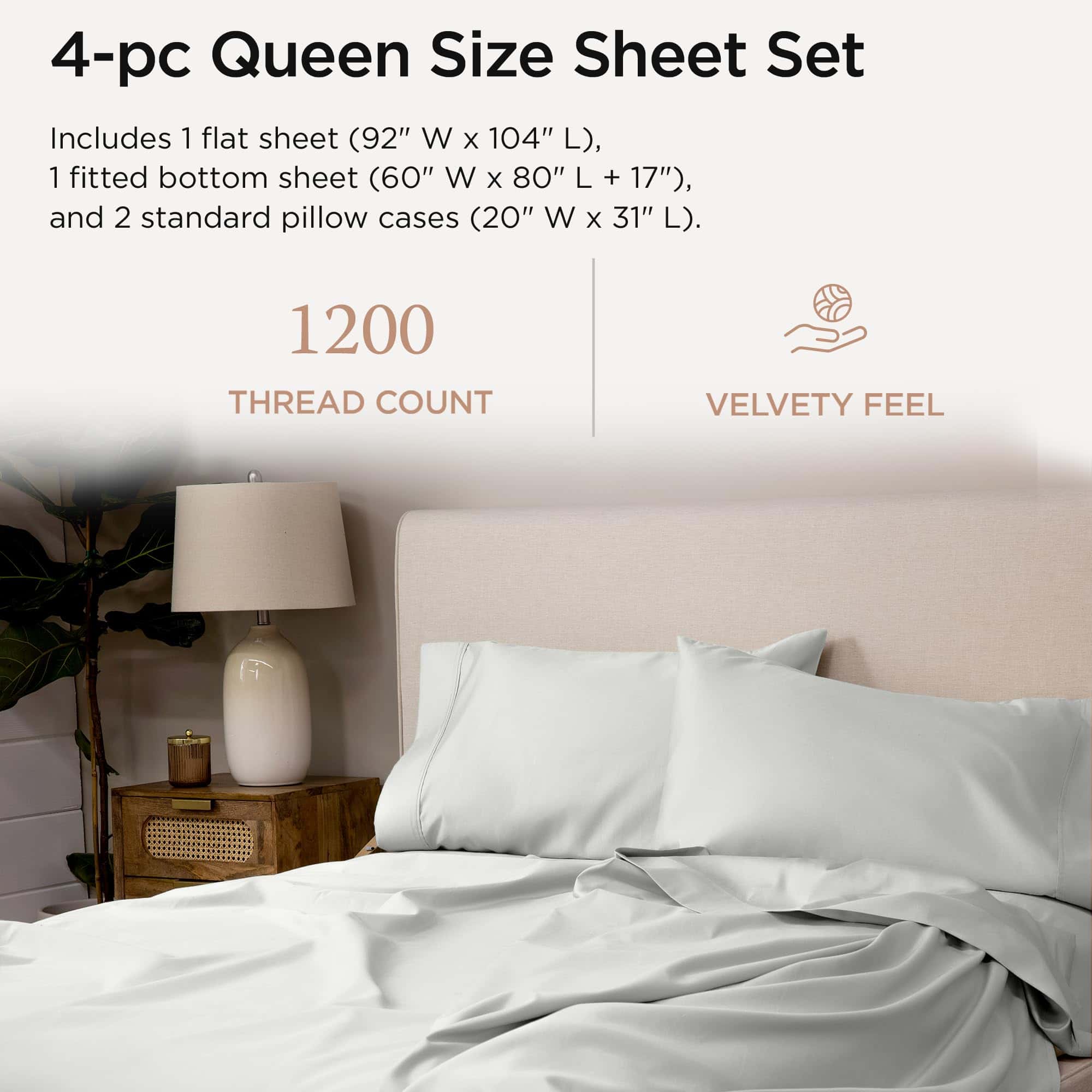 Juego de Sábanas de Algodón Supima de Lujo -Gris Claro