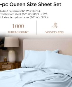 3. ELEGANTE JUEGO DE ROPA DE CAMA CON SÁBANAS INFERIORES DE BOLSILLO PROFUNDO AMPLIO: Experimenta la sensación de dormir en nubes exuberantes y espesas con nuestro rico juego de sábanas de alta cantidad de hilos. Cada lujoso juego de sábanas de tamaño Queen de 4 piezas que incluye 1 sábana plana (92″ An. x 104″ Lar.), 1 sábana ajustable (60″ An. x 80″ Lar. + 17″ de bolsillo profundo) y 2 fundas de almohada estándar (20″ An. x 30″ Lar.). Duerme sin preocuparte por la ropa de cama amontonada en nuestra sábana inferior que se ajusta firmemente. Tiene un bolsillo profundo de tamaño generoso con un elástico alrededor.