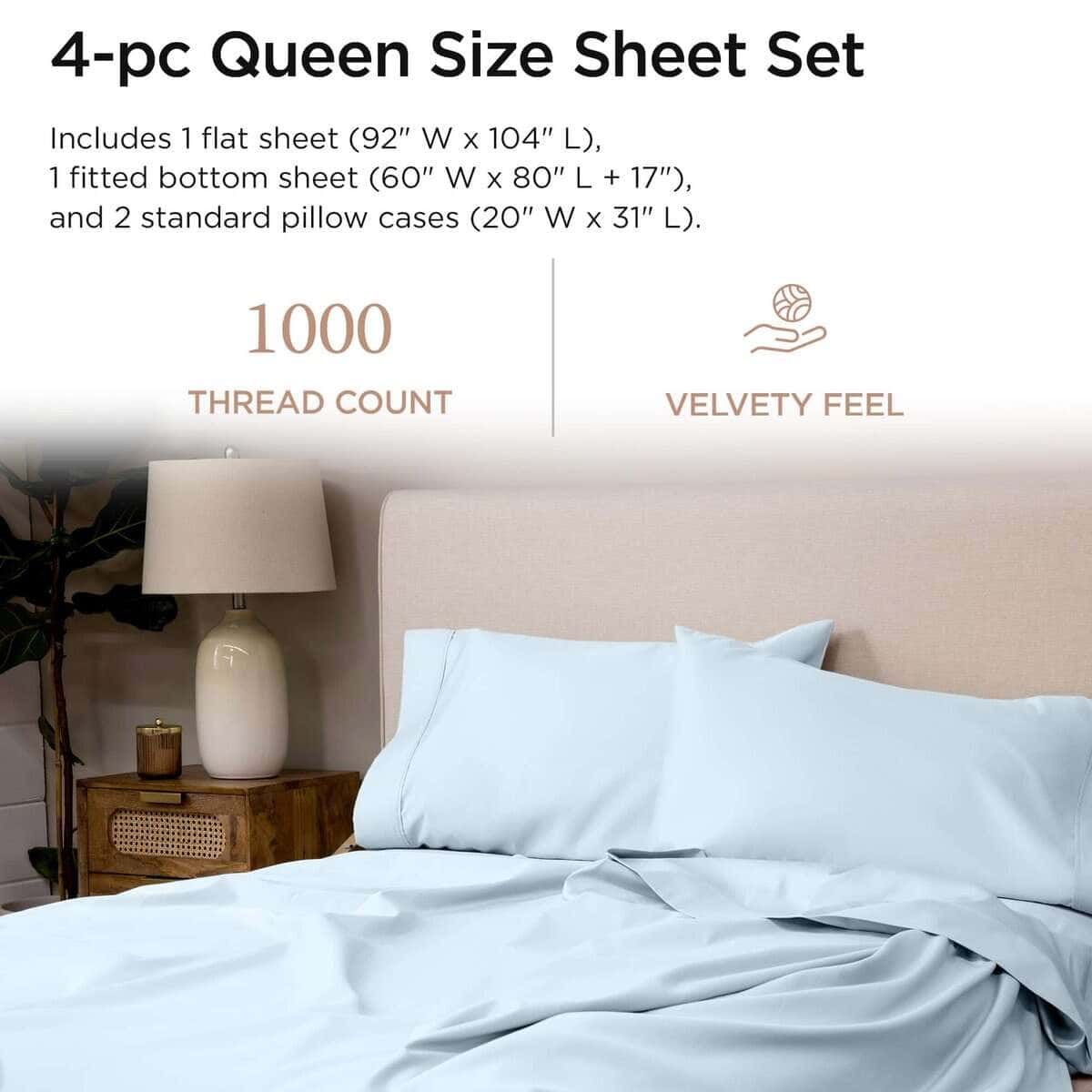 Threadmill Home Linens está dedicado a proporcionarte algunas de las mejores sábanas del mundo. Con su auténtica colección de 1000 hilos, puedes disfrutar de la combinación de lujo y suavidad todas las noches. Estas sábanas son diseñadas para darte la sensación de dormir en un hotel de 5 estrellas, brindándote máxima suavidad, tacto aterciopelado y confort impecable. Hechas con hilos de algodón Supima 100% natural, estas sábanas son la definición de lujo y durabilidad en uno. El tejido satinado transpirable no solo le da un brillo natural a las sábanas, sino que las hace perfectas para cada temporada. El juego de sábanas Queen de 4 piezas incluye una sábana plana, una sábana ajustable y dos fundas de almohada estándar, todo con un ajuste perfecto gracias al bolsillo profundo con elástico. Cada sábana está tejida con hilos extra largos y probada para asegurar resistencia a la formación de bolitas, fibras sueltas y decoloramiento. Lava estas sábanas a máquina a temperatura ambiente y dóblalas inmediatamente después para mantener su calidad. Con certificaciones de prácticas sostenibles y garantía de satisfacción del 100%, Threadmill Home Linens se enorgullece de ofrecerte la mejor calidad y un servicio excepcional.