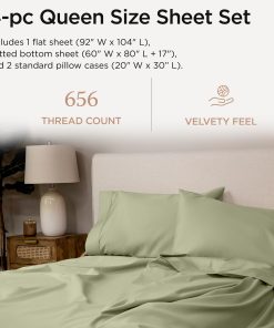 Threadmill Supima Cotton Sheets Queen | 656 Thread Count Queen Sheets for Queen Mattress | 4 Piece Luxury Bed Sheets | Sateen Weave Hotel Quality Sheets with Elasticized Deep Pocket| Sage Green Sheets