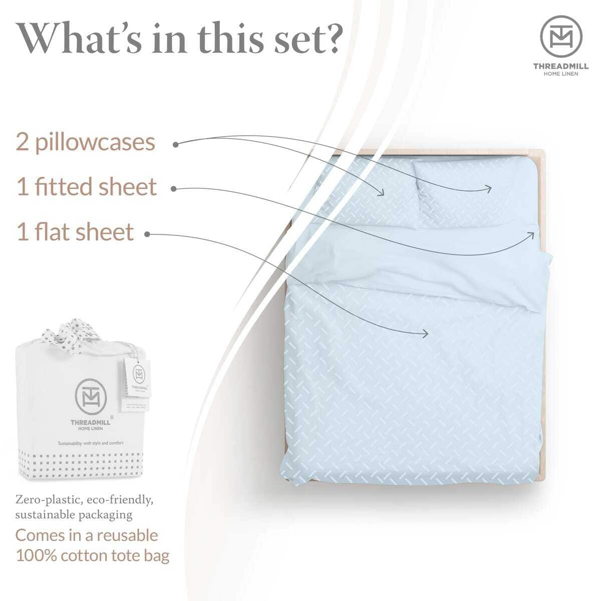 Juego de sábanas de algodón Threadmill para -Azul Claro Astr