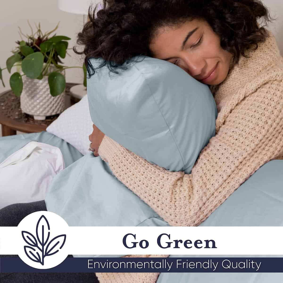 2. ECOLÓGICO: Nuestras sábanas de bambú viscosa apoyan un entorno de sueño limpio. Las propiedades naturales de las fibras de bambú viscosa ofrecen una superficie de sueño suave y cómoda, fomentando un entorno de sueño más saludable.