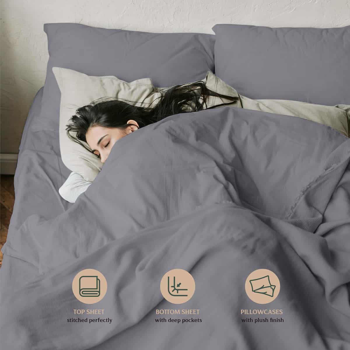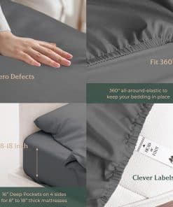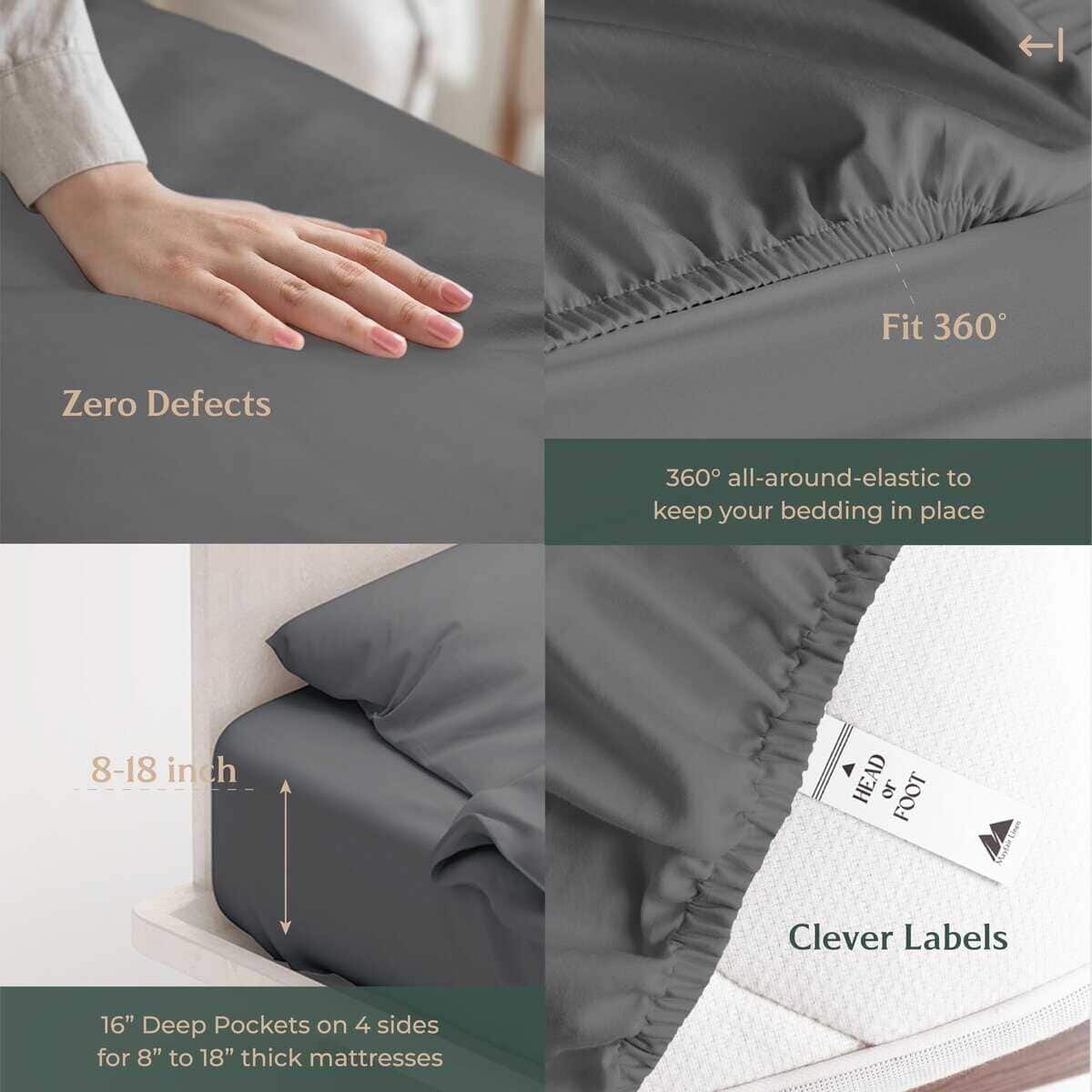 Abrace el juego de sábanas y fundas de almohada increíblemente suaves y excepcionalmente sedosas que lo hacen sentir envuelto en los pañuelos de las nubes. Nuestras sábanas y fundas de almohada ofrecen una comodidad sin igual, asegurando una experiencia acogedora cada noche, haciéndolas la elección perfecta para el bienestar general. Las fibras sedosas tienen propiedades termorreguladoras y no retienen calor para una comodidad óptima en verano e invierno. Estas lujosas sábanas son increíblemente ligeras, frescas y súper transpirables, y perfectas para parejas que duermen a diferentes temperaturas por la noche. Nuestro juego de sábanas también tiene un ajuste perfecto, gracias al amplio elástico y los bolsillos profundos que se adaptan a un colchón de hasta 18 pulgadas. Estas sábanas y fundas de almohada son mucho más duraderas y tienden a durar más tiempo si se cuidan adecuadamente. Estas sábanas retienen bien el tinte y resisten la decoloración, el apelotonamiento y la contracción. Para obtener los mejores resultados, lave estas sábanas en la casa a baja temperatura y séquelas en secadora a baja temperatura. No planchar.