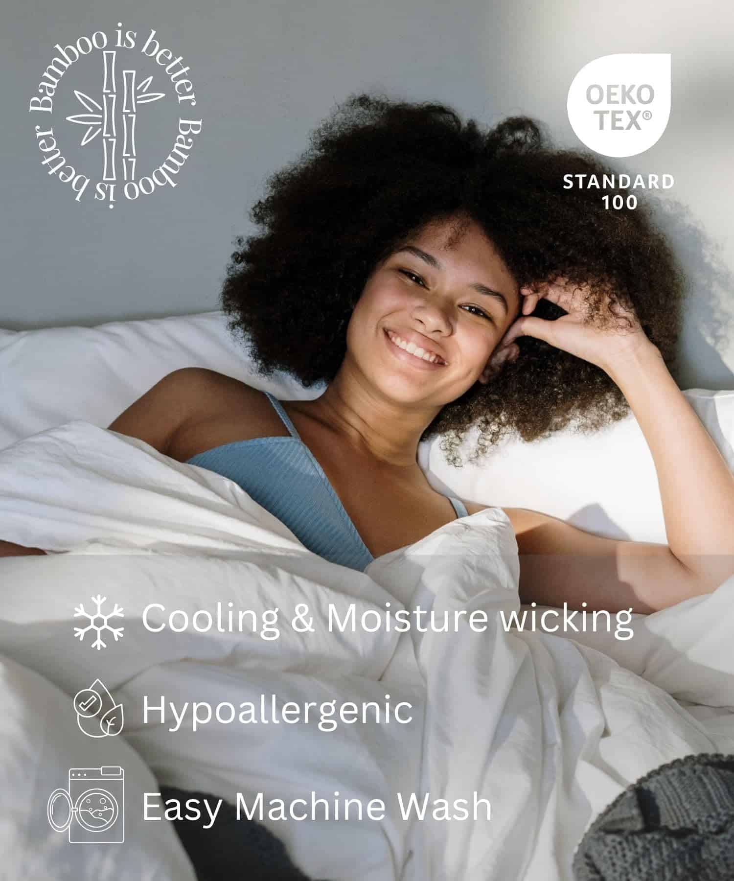2. Auténtico y genuino – Certificado Oeko-Tex 100 Standard y cultivado orgánicamente. Este juego de cama queen de bambú 100% viscosa tiene todas las credenciales verdes que esperarías de una empresa que realmente se preocupa.