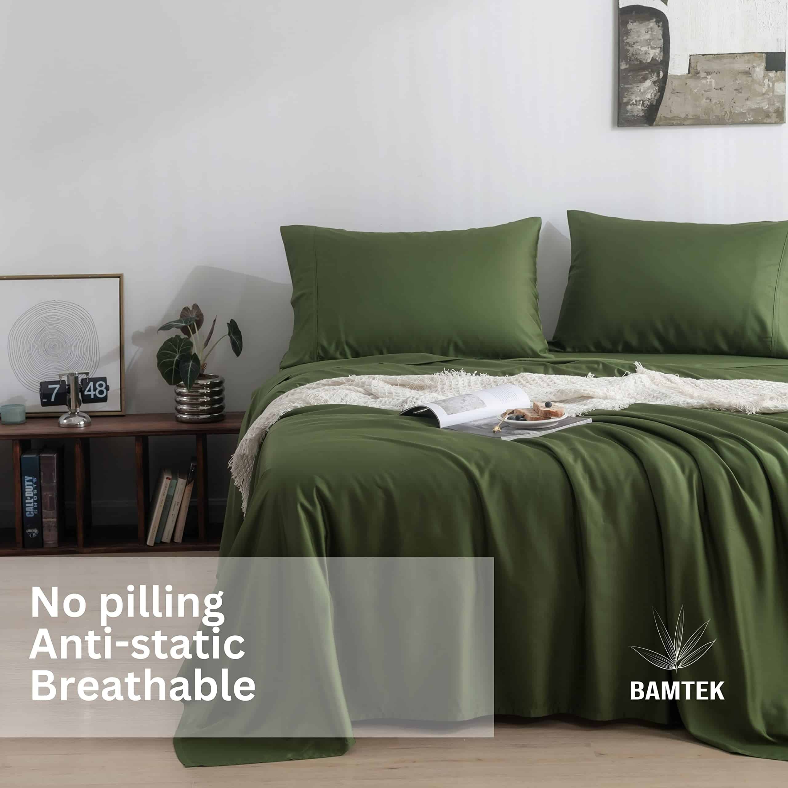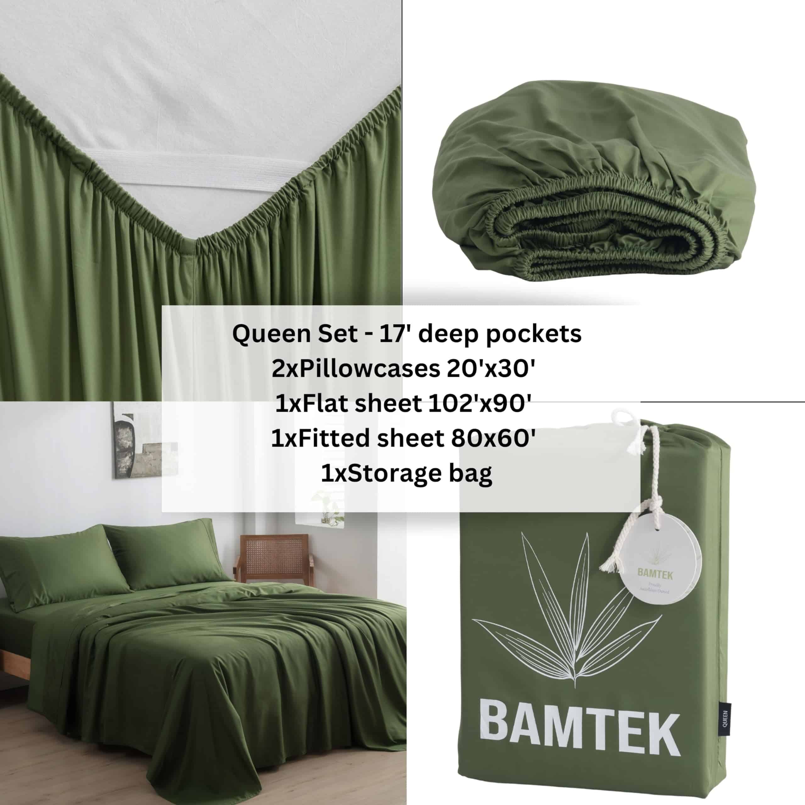 Juego de sábanas de bambú 100% viscosa tamaño Queen, juego