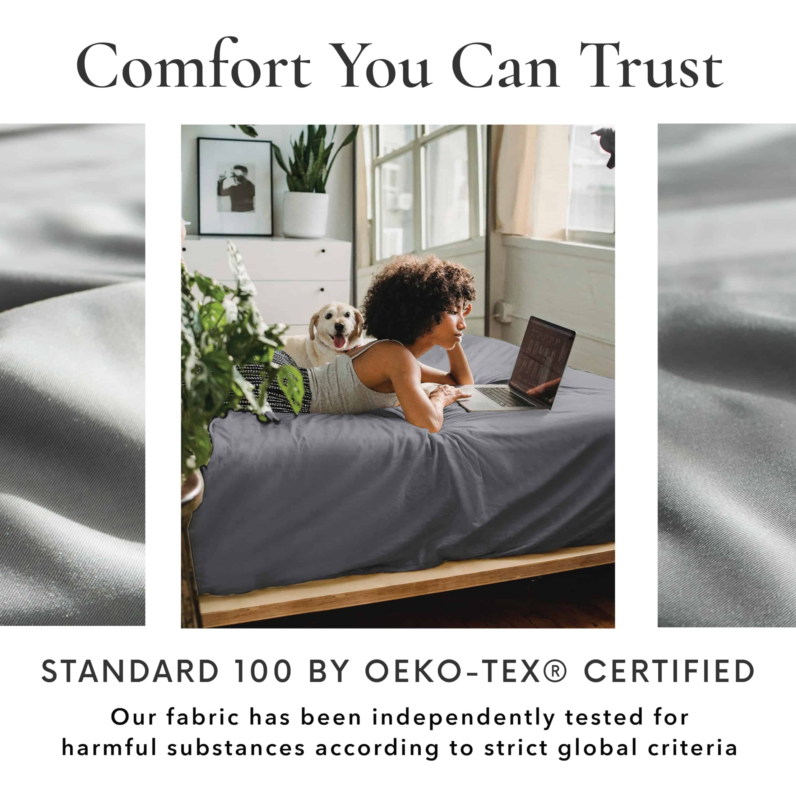 4. Cuidado Sencillo, Naturalmente Seguro. Disfruta de sábanas tan prácticas como lujosas. Nuestras sábanas de bambú para cama completa son lavables a máquina, resistentes a la decoloración, y certificadas por OEKO-TEX para tu seguridad. ¡Fáciles de mantener y respetuosas con el medio ambiente!