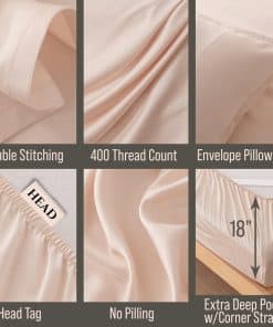 2. REDEFINE TU ESTILO DE VIDA- Con un recuento de 400 hilos, la calidad superior de estas sábanas derivadas de bambú son un sueño para dormir, volviéndose más suaves con cada lavado. La sábana ajustable con bolsillo extra profundo de 18″ cabrá incluso en los colchones más lujosos.