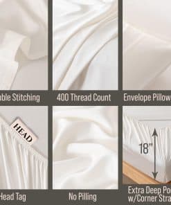 2. REDEFINE TU ESTILO DE VIDA: Con un conteo de 400 hilos, la calidad superior de estas sábanas derivadas de bambú son un sueño para dormir, haciéndose más suaves con cada lavado. La sábana ajustable de 18″ de bolsillo extra profundo se adaptará incluso a los colchones más gruesos.