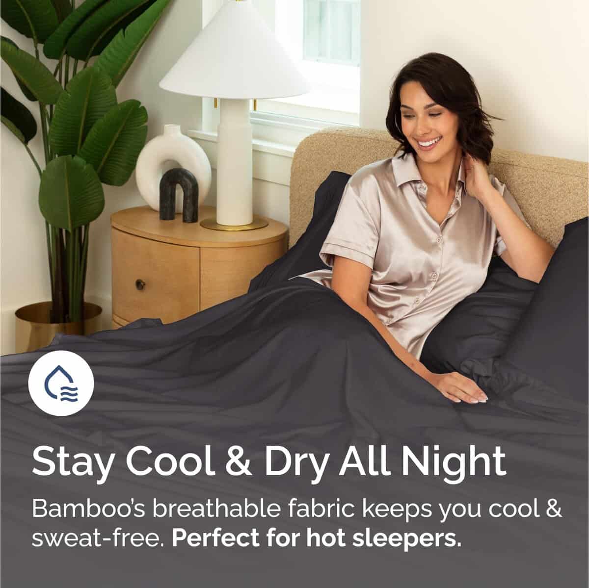 1. Mantente fresco toda la noche: Nuestro juego de sábanas de bambú completo está diseñado para mantenerte fresco y cómodo durante toda la noche. Gracias al tejido altamente transpirable y que absorbe la humedad de las sábanas de bambú, disfrutarás de un sueño cómodo y reparador.