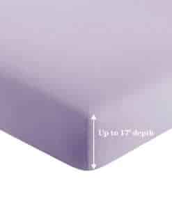 4. Características: La sábana ajustable con bolsillos profundos es totalmente elástica y se ajusta hasta 16 pulgadas. Duradero, sin pelusa, súper suave, resistente a las arrugas, prelavado, resistente a la decoloración, hipoalergénico, transpirable. Hermosamente empaquetado en una bolsa con cremallera.