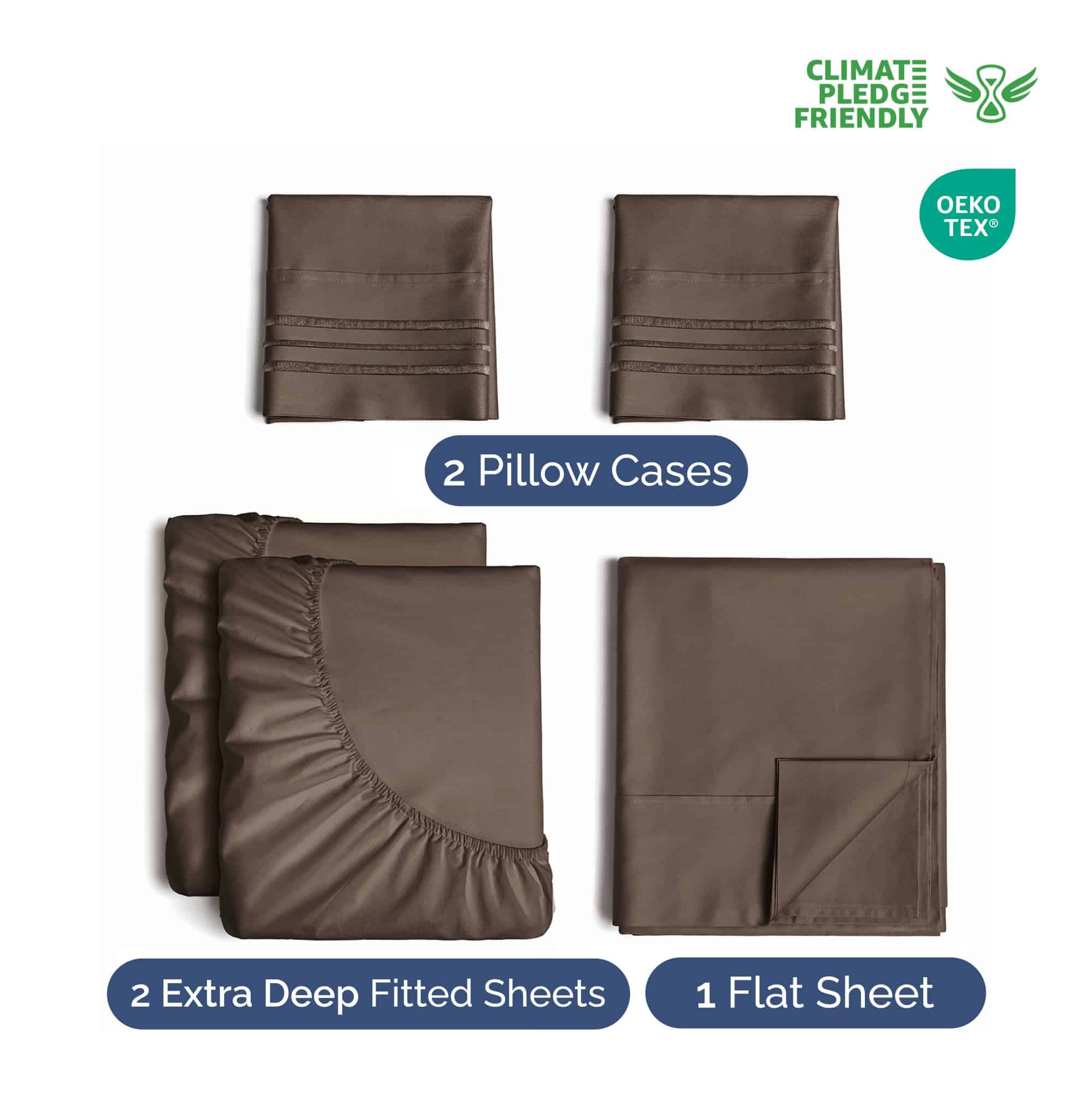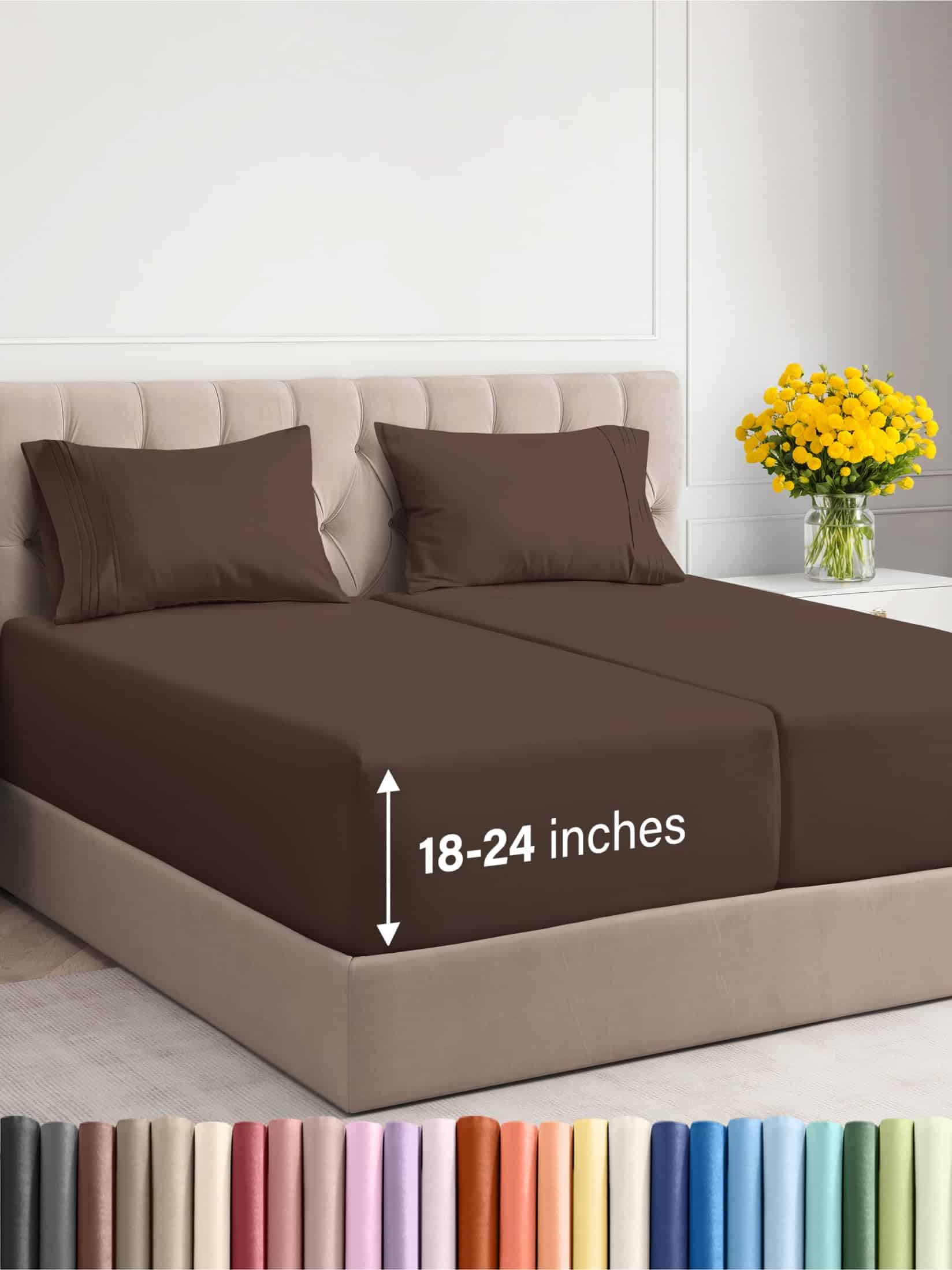 Juego de sábanas de bolsillo extra profundo -Marrón
