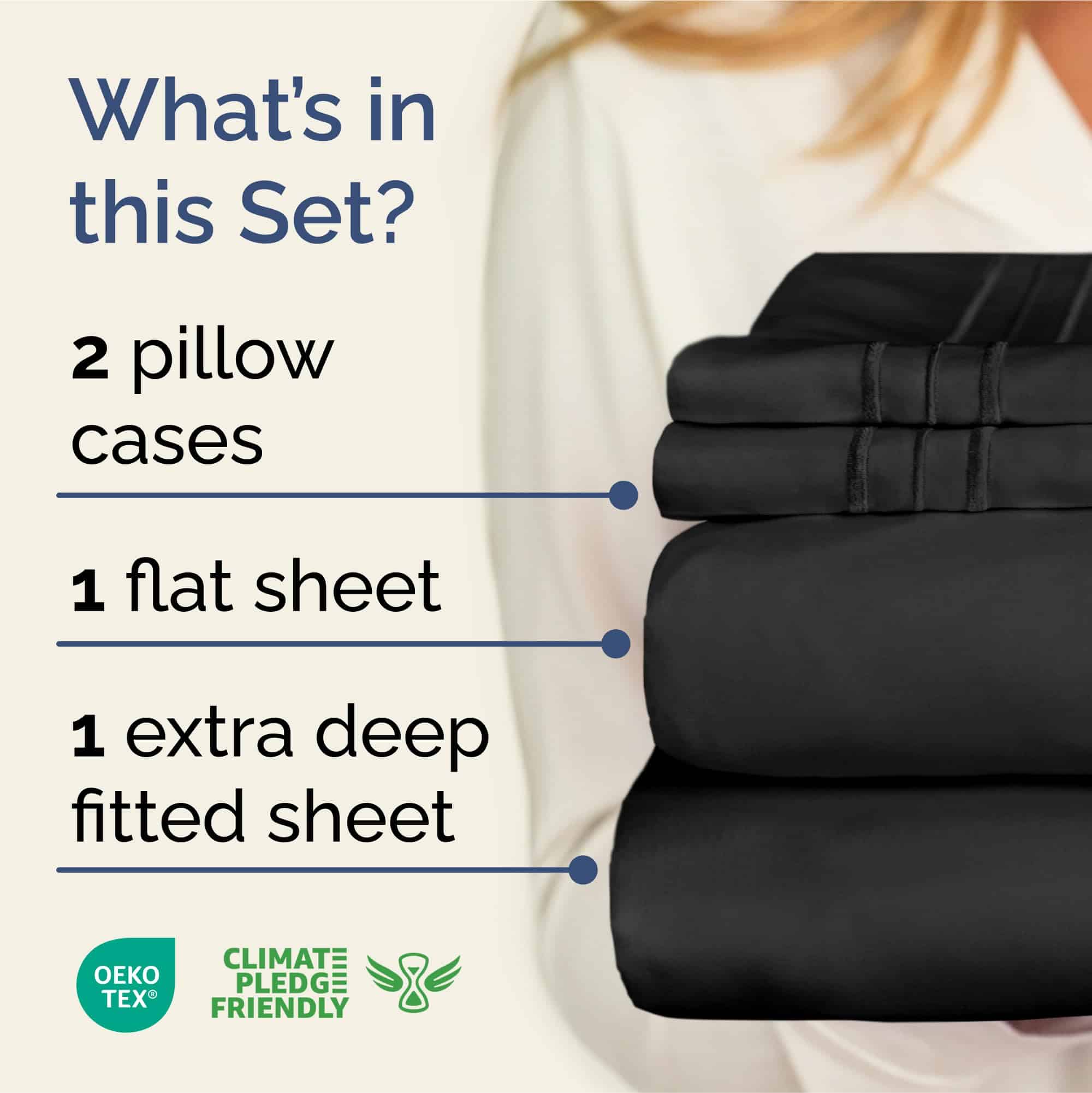 Juego de sábanas de bolsillo extra profundo -Negro