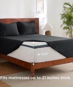 Estos juegos de sabanas de bolsillo profundo para camas individuales de Bedsure ofrecen una combinación perfecta de frescura, suavidad y durabilidad para mejorar tu experiencia de sueño. Con una capacidad mejorada de absorción de humedad 3M Scotchgard, estas sabanas ayudan a expulsar el sudor y mantenerte seco y fresco durante toda la noche, perfecto para los durmientes calientes. La bolsa profunda y el ajuste fácil garantizan que estas sabanas para camas individuales se ajusten perfectamente incluso a colchones y cubrecolchones más gruesos de hasta 21″ de grosor sin problemas de desplazamiento. El tejido de primera calidad cepillado ofrece una suavidad incomparable y una durabilidad excepcional, haciendo que estas sabanas sean una inversión inteligente para tu espacio de descanso. Además, el diseño exquisito con bordes plisados en las fundas de almohada y la sábana superior agrega un toque de elegancia y estilo a tu dormitorio. El juego incluye una sábana plana generosa, una sábana ajustable con elástico completo y una funda de almohada a juego, todo ello pensado para ofrecerte la máxima comodidad y estilo en tu cama individual.