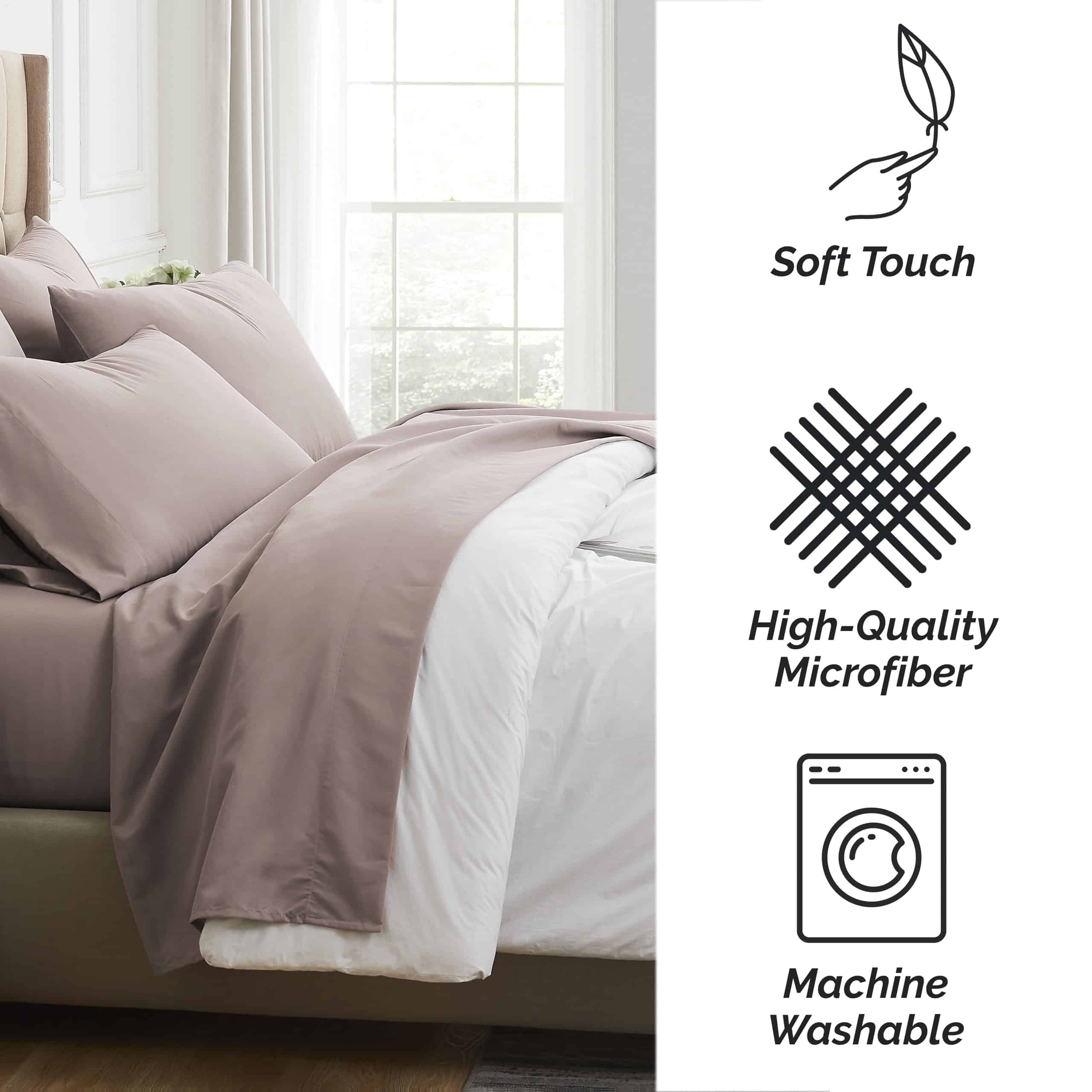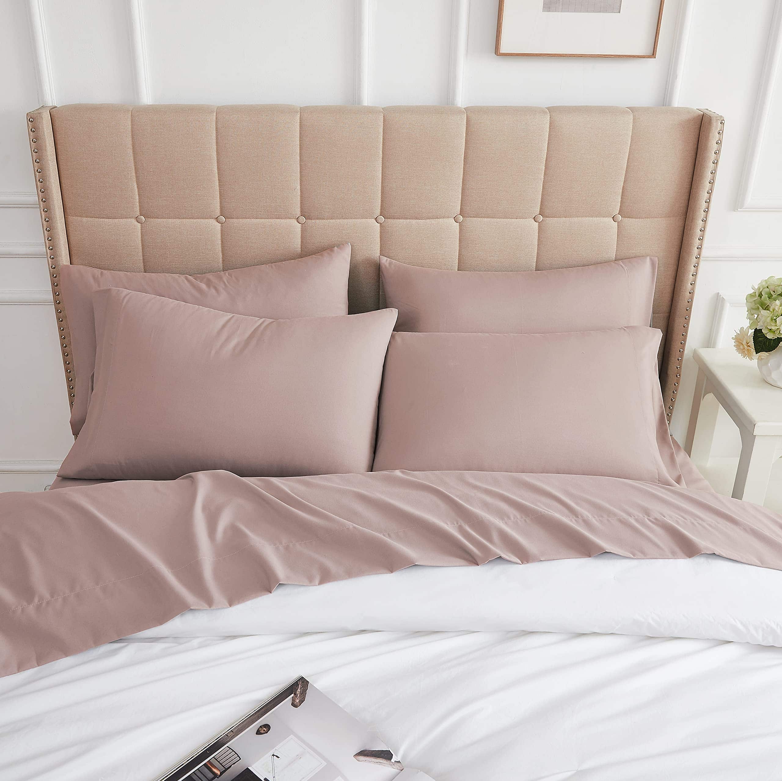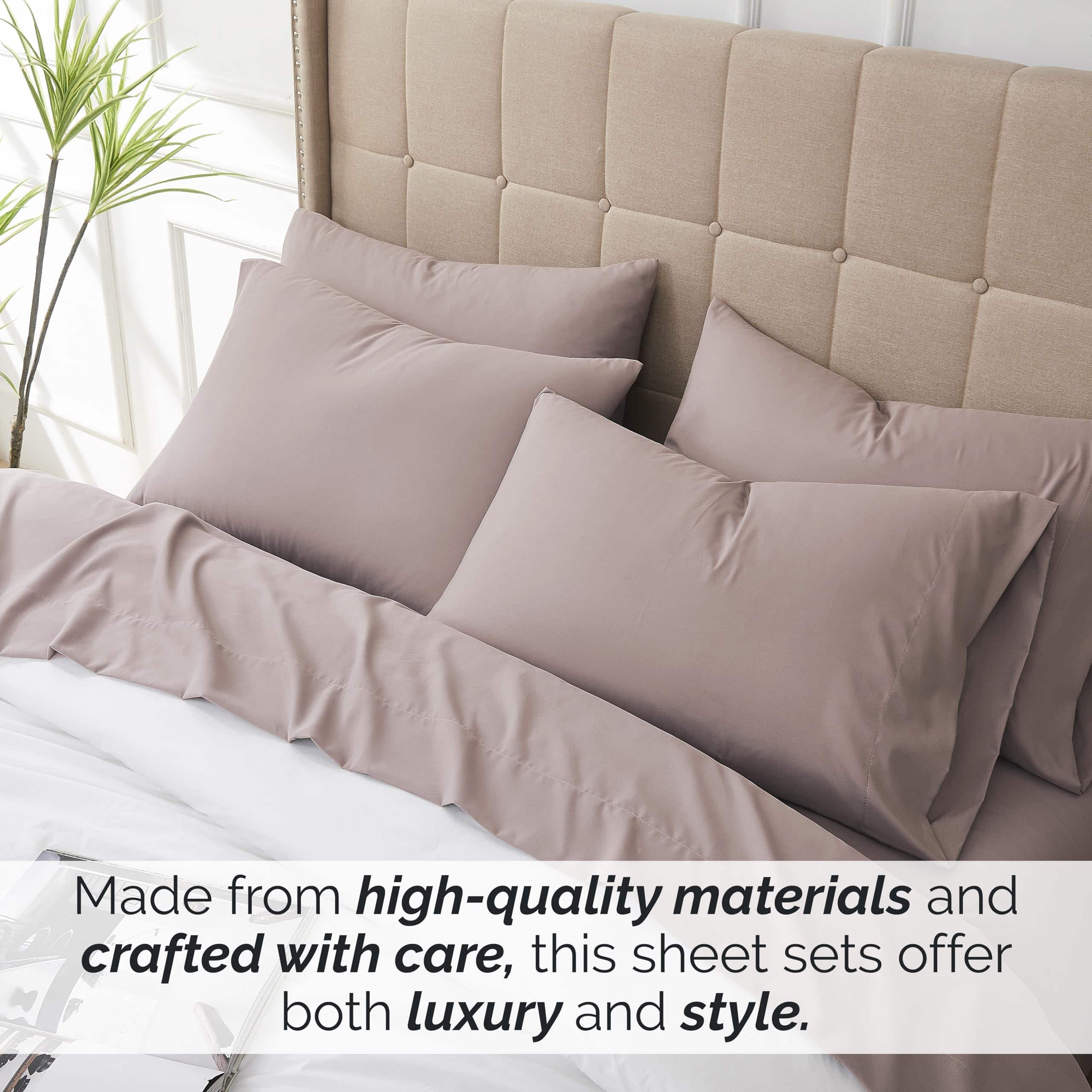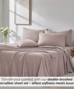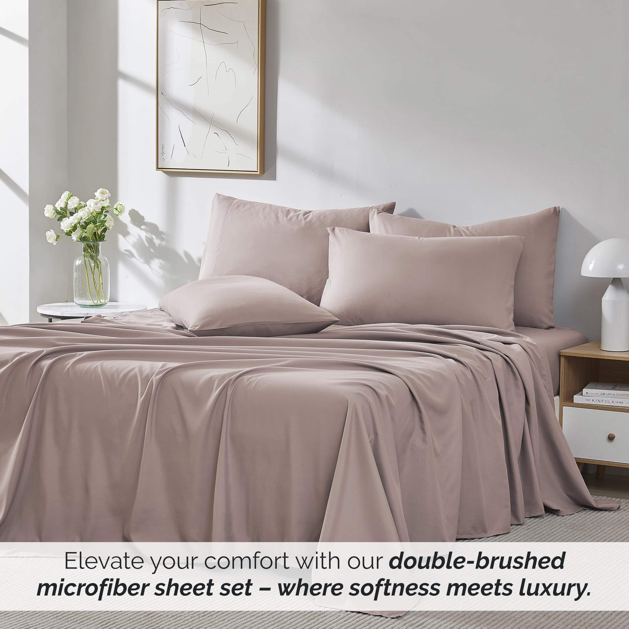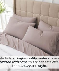 4. Fácil Cuidado y Resistente a la Decoloración: Nuestras Sábanas son Resistentes a la Decoloración y al Pilling. Saldrán de la secadora luciendo frescas cada vez. Y sí, también son Resistentes a las Arrugas. Estos Juegos de Sábanas están hechos con nuestra tela de microfibra lujosa de doble cepillado de 100 GSM (gramos por metro cuadrado), brindando una suavidad y lisura sustancialmente mayor, mientras que la mayoría de las sábanas están hechas con 75-90 GSM.