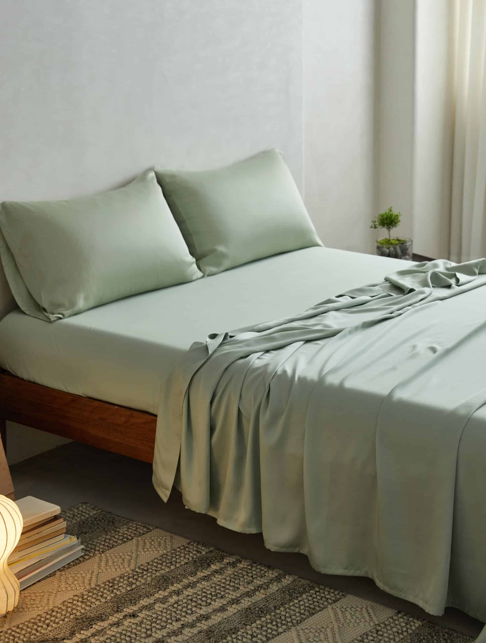 4. CUIDADO FÁCIL Y DURADERO: Estas sábanas de viscosa derivadas del bambú son lavables a máquina con secado a baja temperatura. Resistentes a arrugas, decoloración y contracción, garantizando durabilidad y belleza duraderas para tu conjunto de ropa de cama. Di adiós al planchado tedioso y hola al lujo sin esfuerzo.