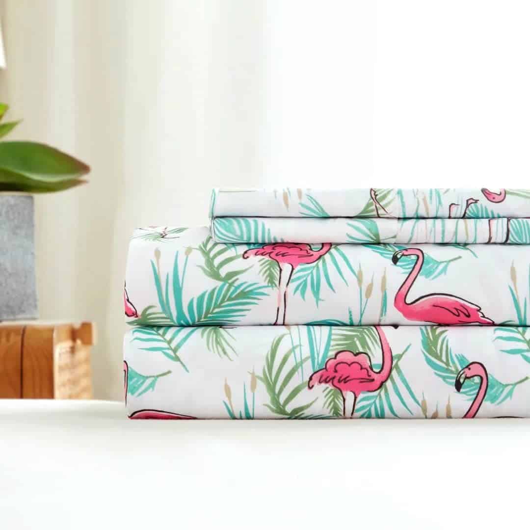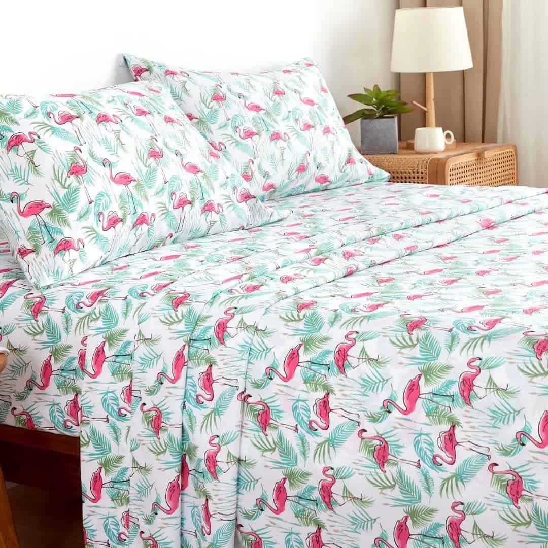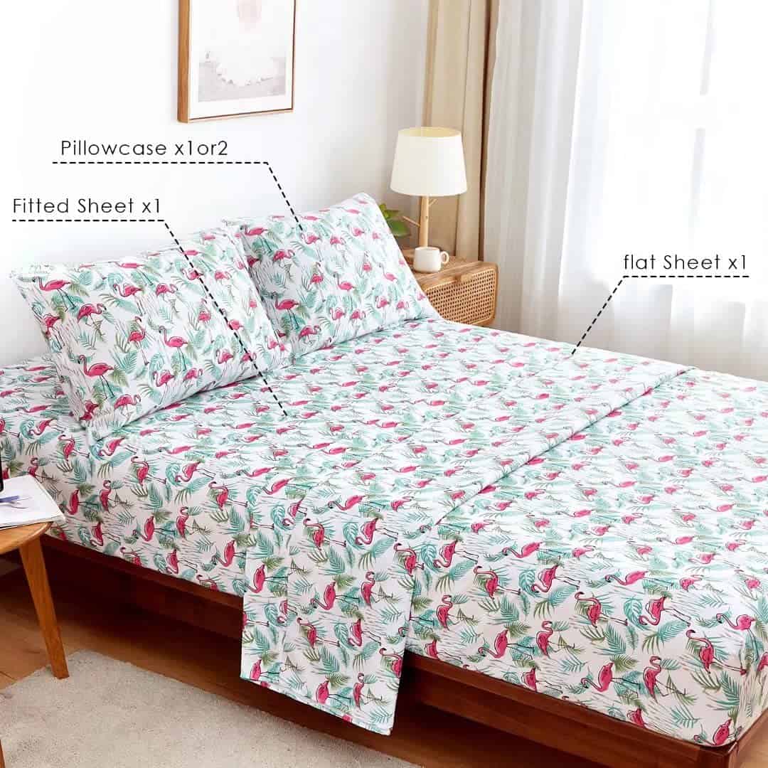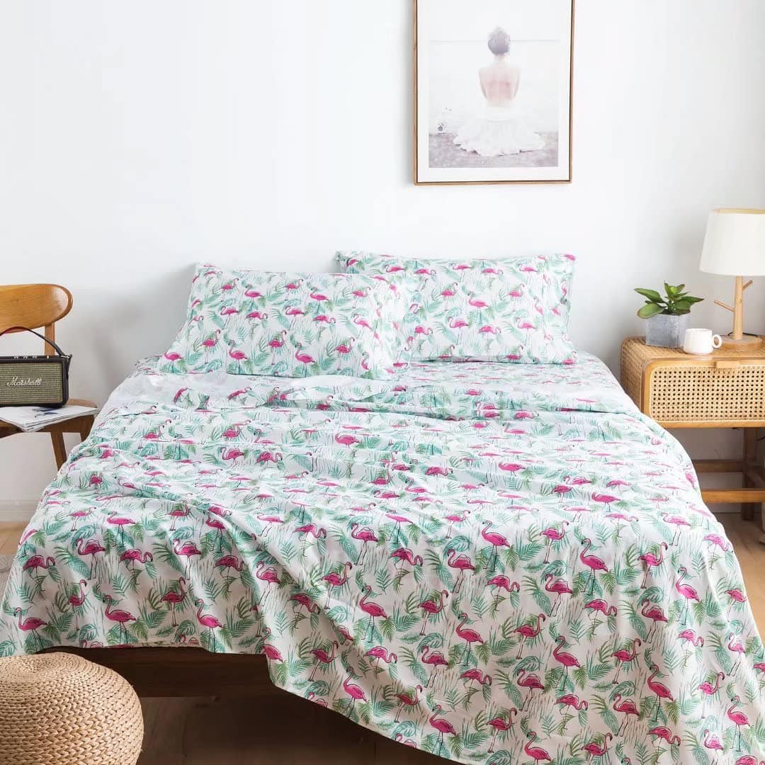 4. Decoración del hogar Añade un toque colorido y divertido al centro de tu suite con esta sábana de cama queen de flamenco. Es la mejor combinación para la decoración, diseño de estampado de flamencos rosados vibrantes sobre fondo blanco. El fabuloso color revive esta sábana de cama con una apariencia elegante y superior para complementar tu habitación y darle un aspecto chic.