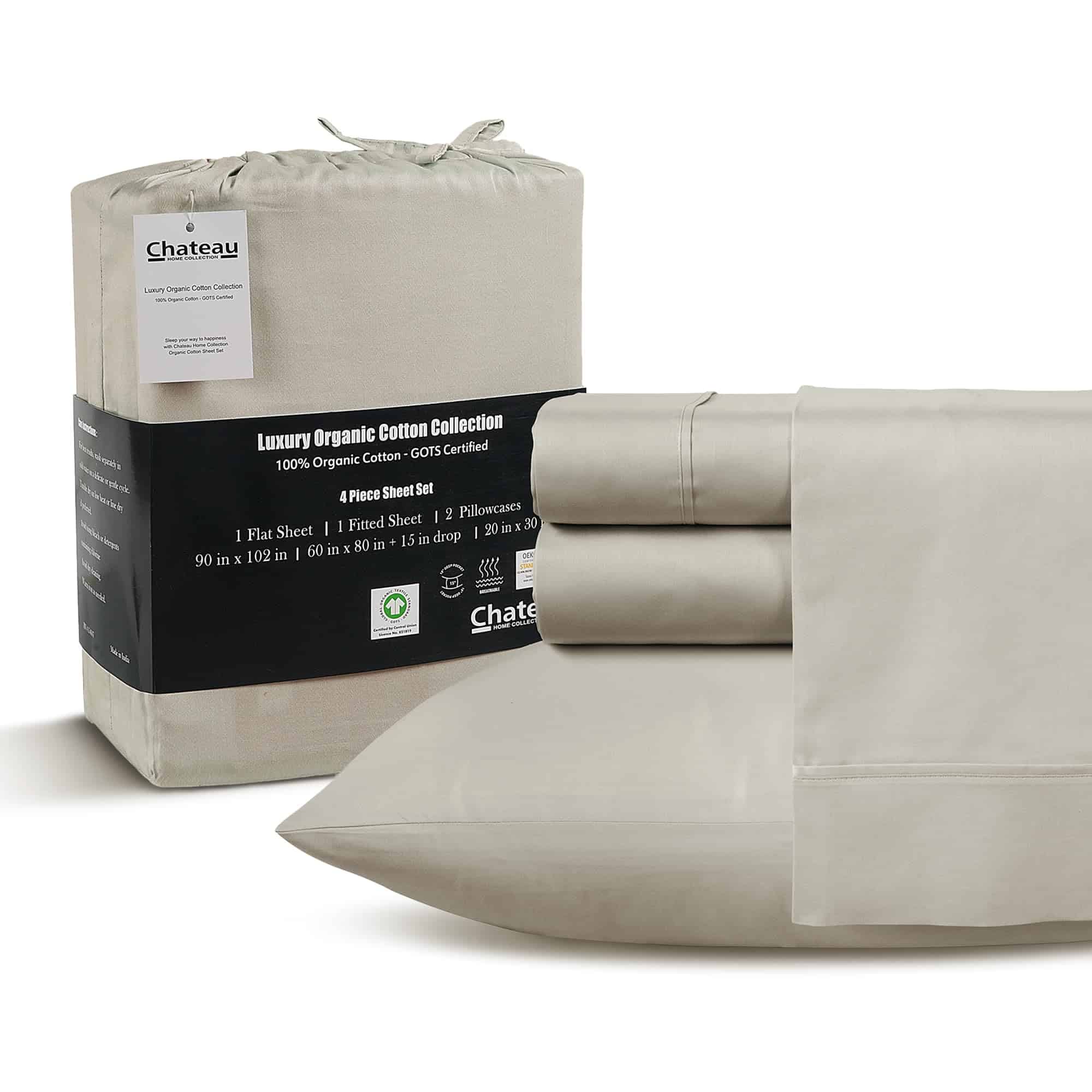 Chateau Home Collection’s Eco-Luxe Sheets: Dive into a world of luxury with our 100% organic cotton sheets, certified by Oeko-Tex and GOTS. These sheets weave nature’s touch into a silky sateen embrace, pampering your senses with sustainability and pure indulgence.