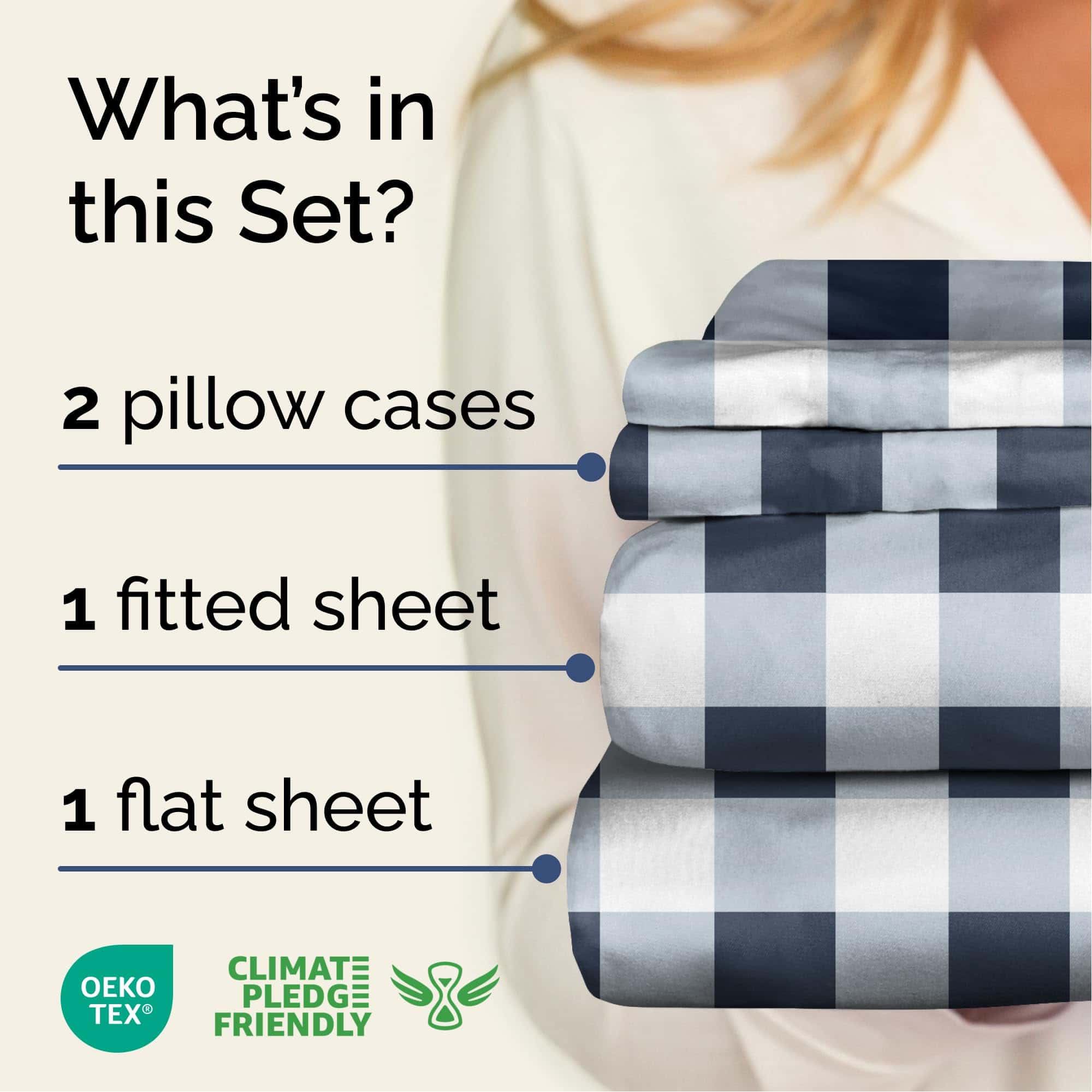 Juego de sábanas de cuadros 4 piezas para cama tamaño Full