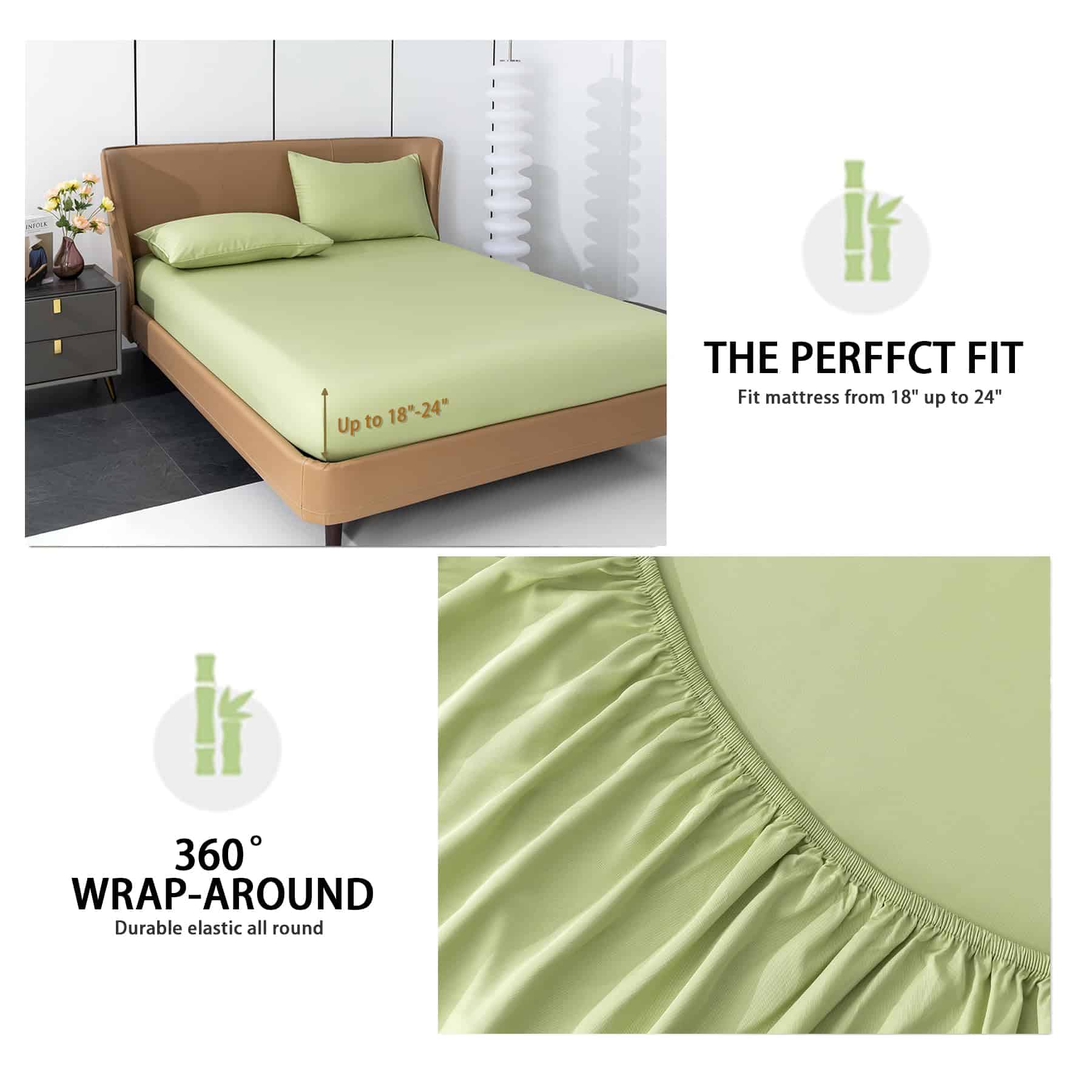 Juego de Sábanas de Enfriamiento Levoo de Bambú de 18″-24″
