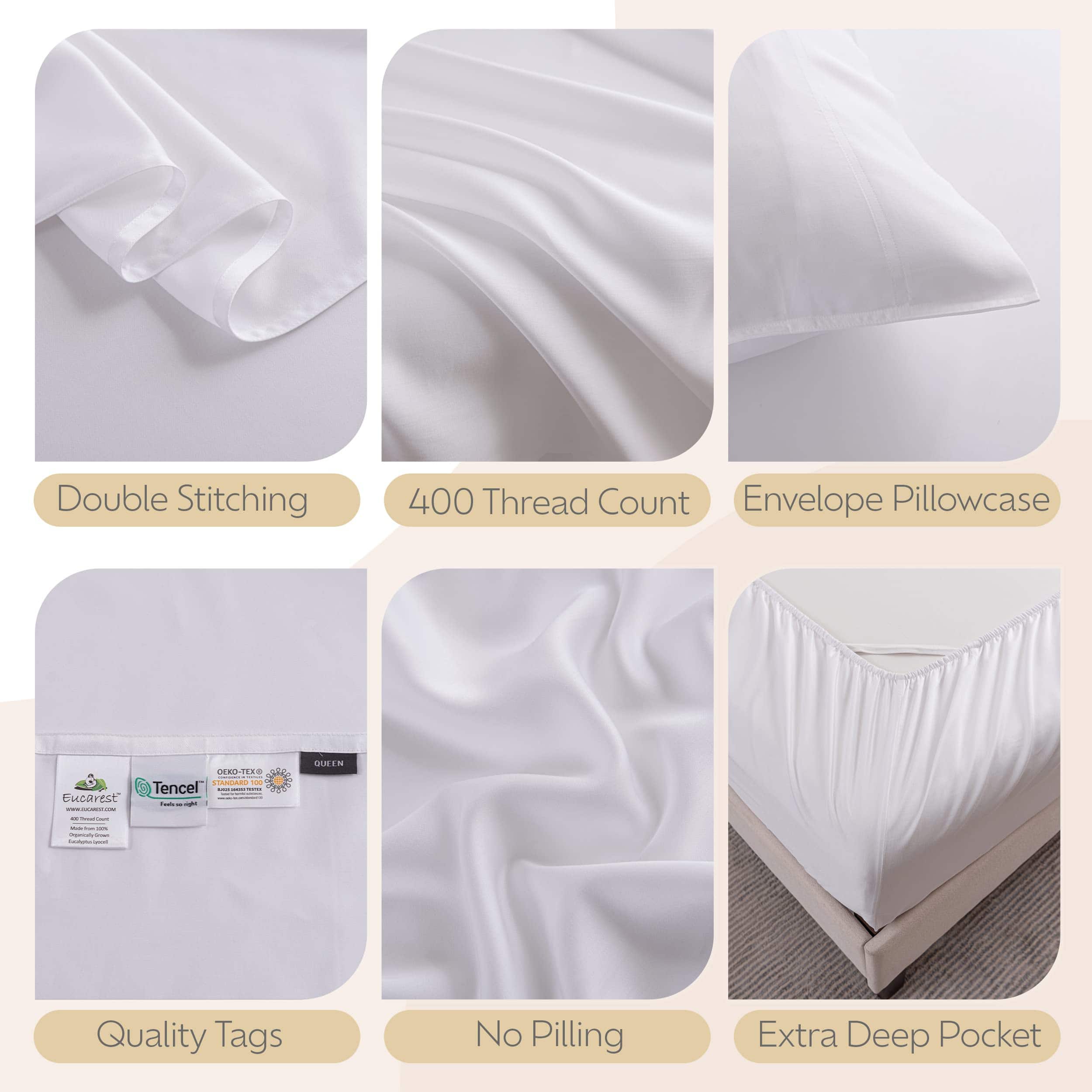 Juego de Sábanas de Eucalipto Lyocell, -Blanco Puro