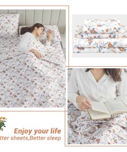 Juego de sábanas de flores naranjas Softan para cama King –