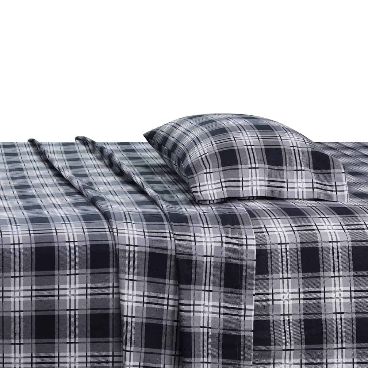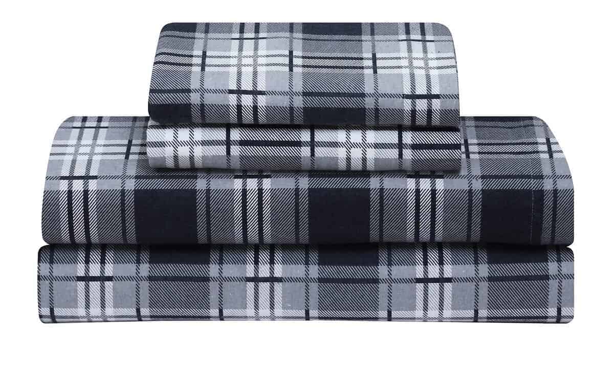 Juego de sábanas de franela 100% algodón -Cuadros grises