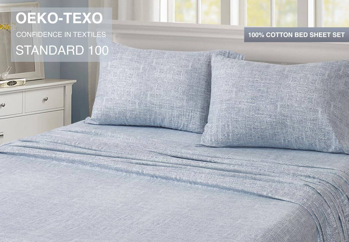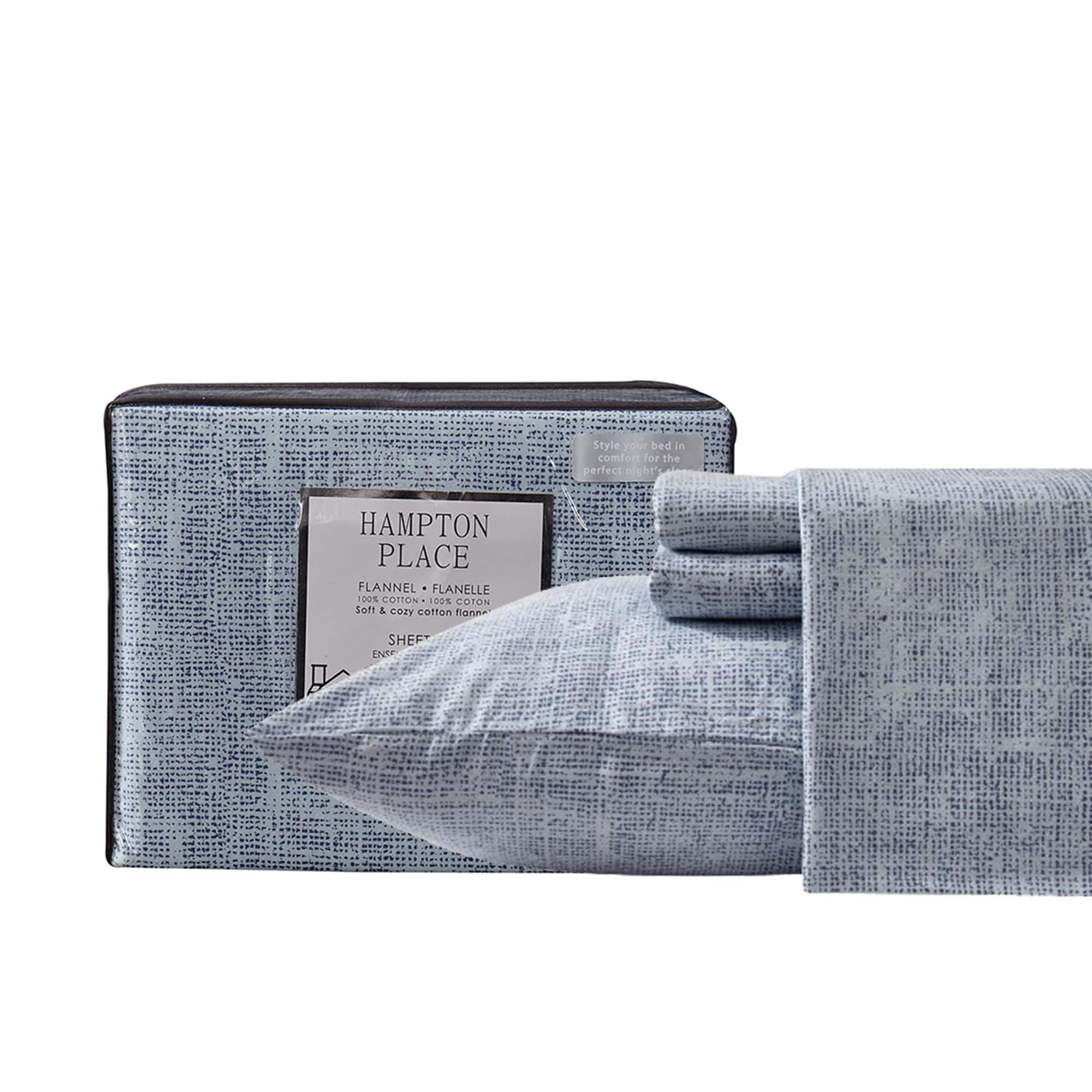 Juego de sábanas de franela 100% algodón Queen -Azul Claro