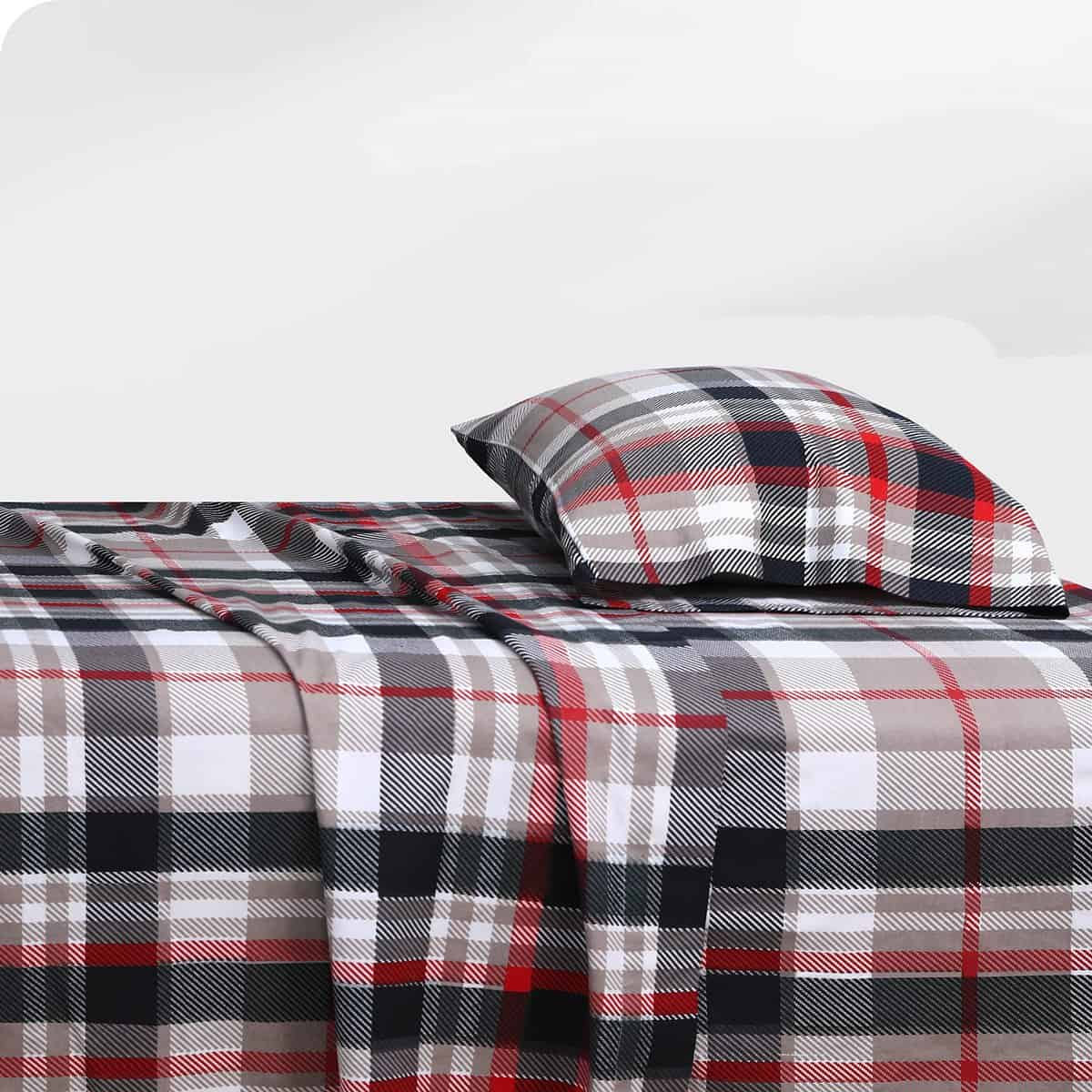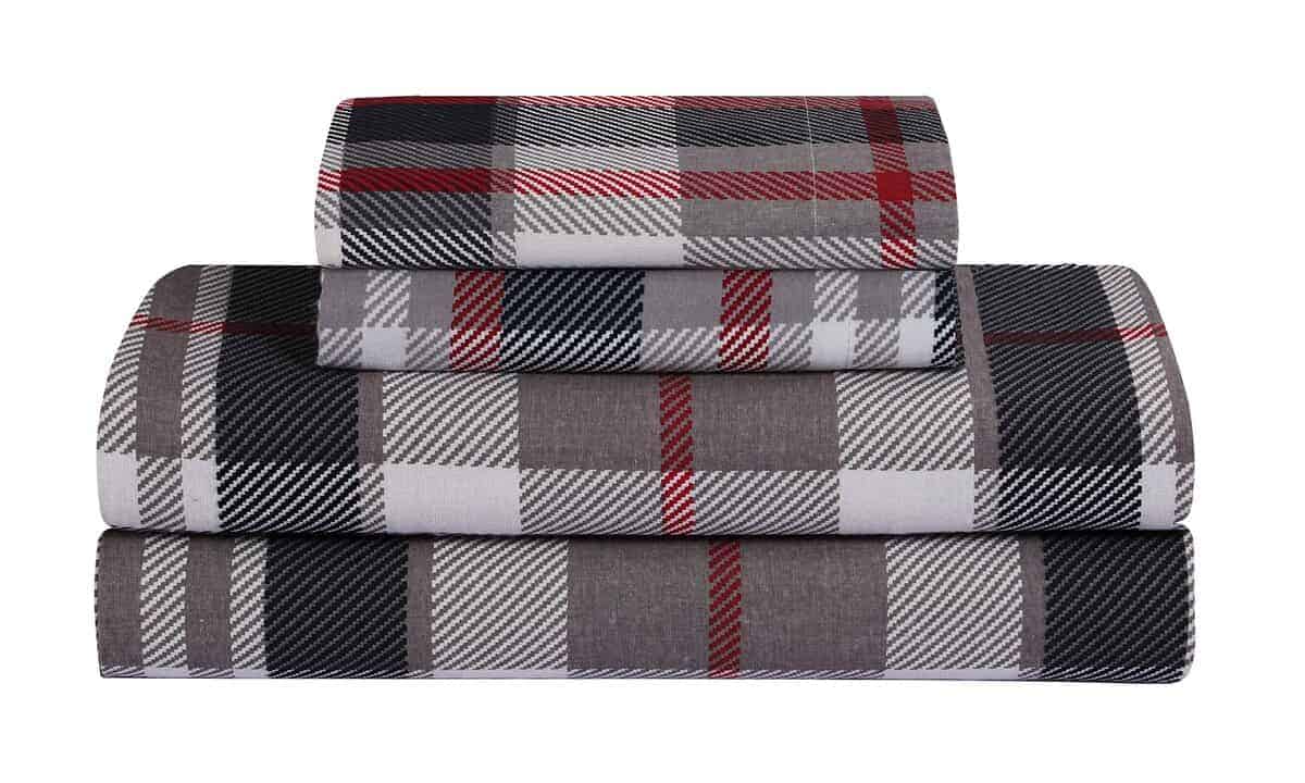 Juego de sábanas de franela 100% algodón -Rojo a Cuadros