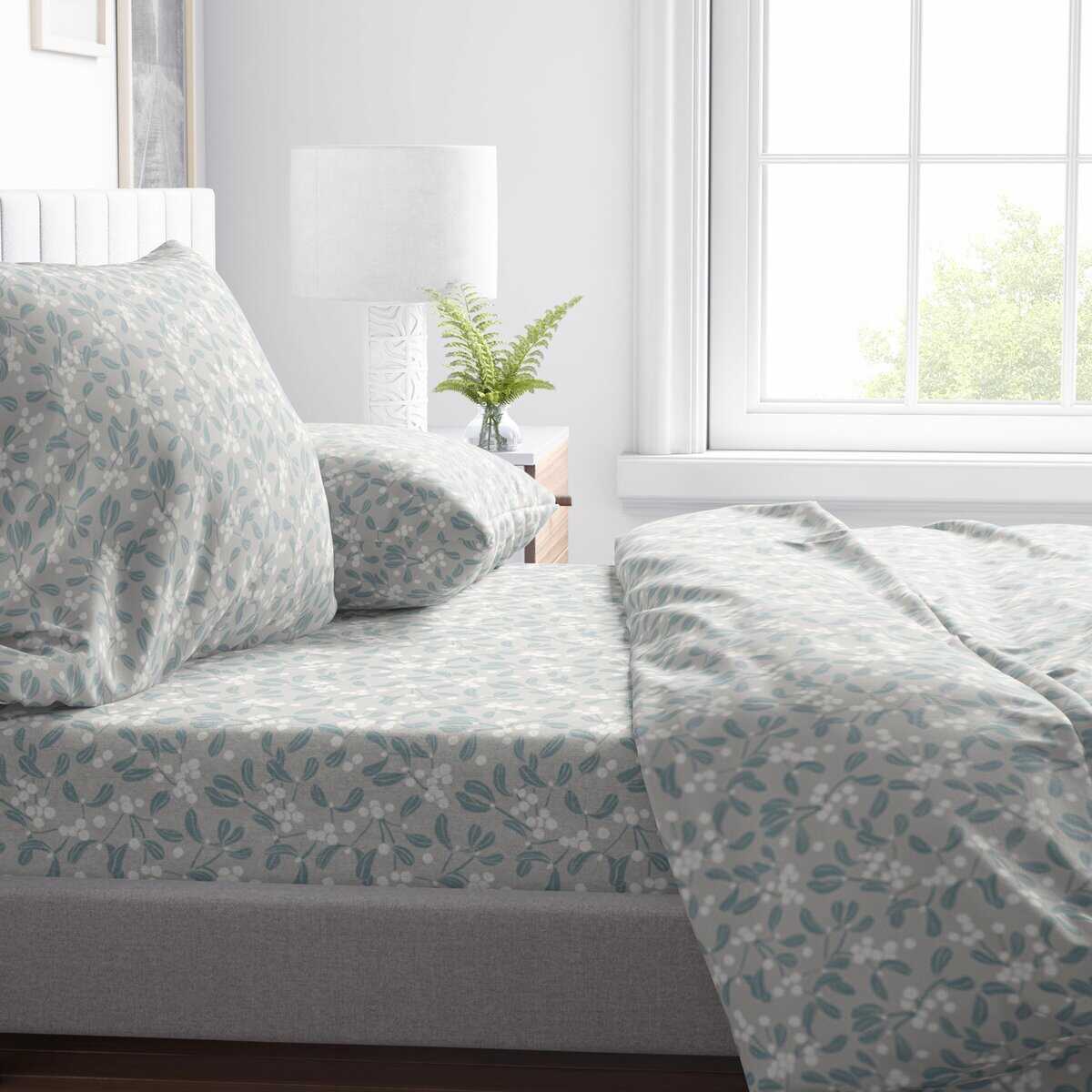 Juego de Sábanas de Franela Dancing Holly Neutral Twin