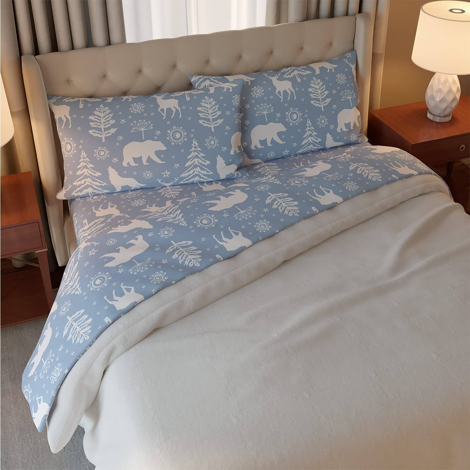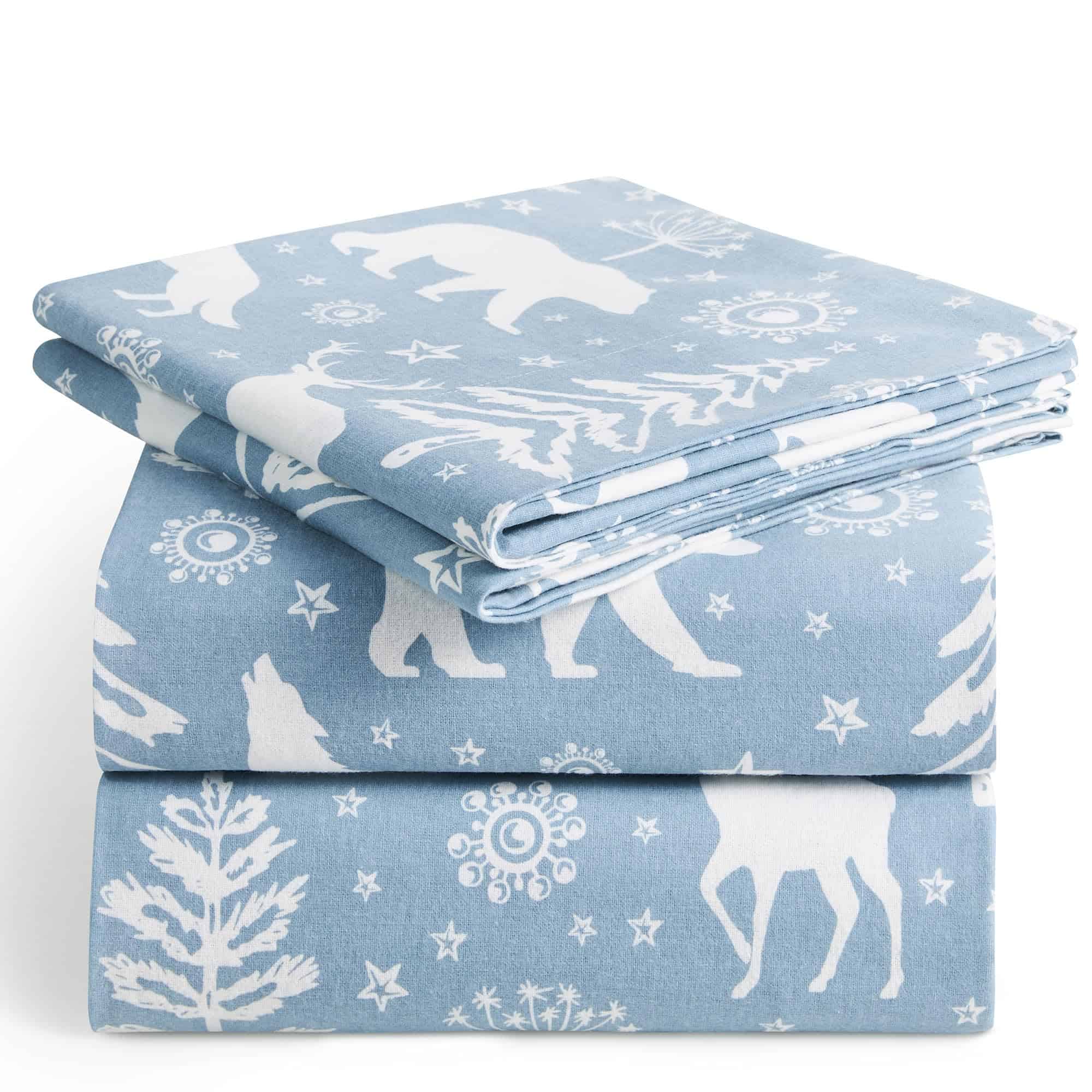 Juego de sábanas de franela de algodón -Azul Claro Invierno