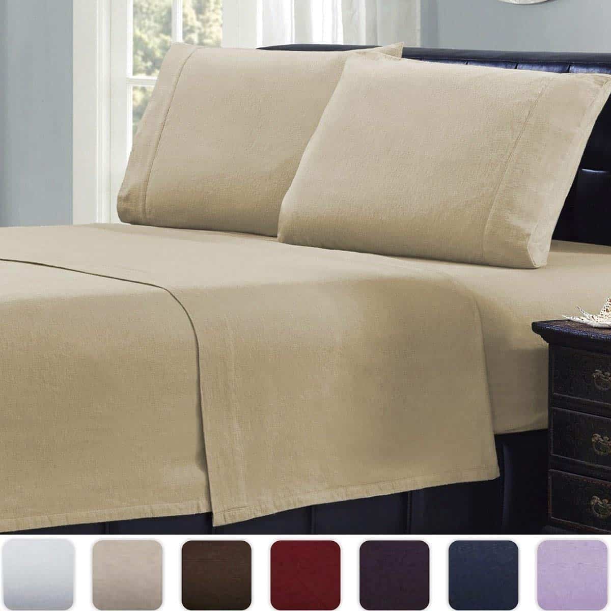 1. 100% Algodón de Franela Liviana El tejido de franela de 160g de Mellanni proporciona calor adicional sin peso en exceso/sudor nocturno. El algodón natural disminuye la cantidad de pelusa con cada lavado. Ideal para primavera, otoño e invierno.
