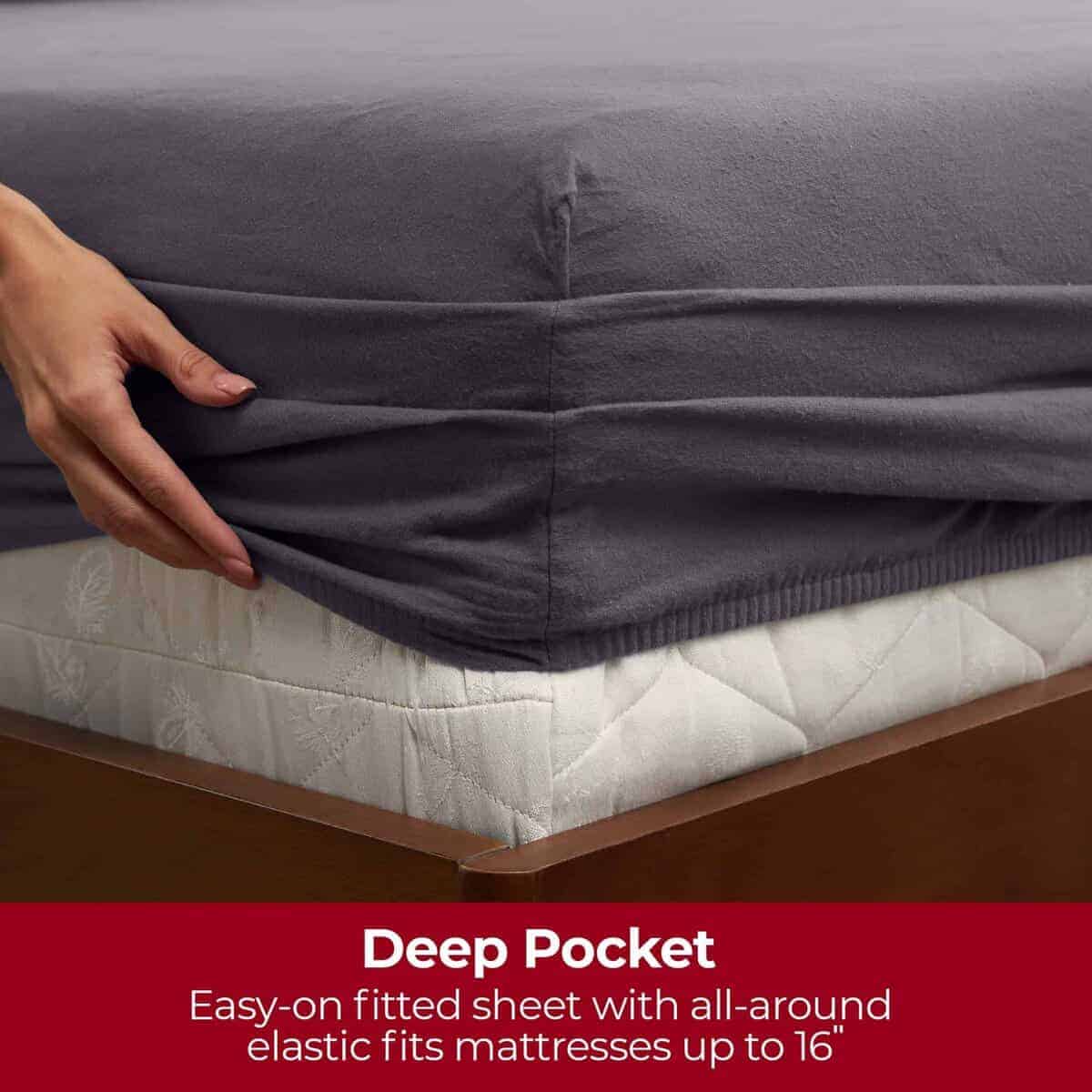3. Duradero y fácil de cuidar – No se desvanece, destiñe ni encoge. Resistente a las arrugas y manchas. La sábana ajustable acogedora y sin desplazamiento se ajusta a colchones de hasta 16″ de profundidad, y es fácil de poner y quitar con el elástico en todo su alrededor. Lavar a máquina en frío, secar en secadora a baja temperatura para reducir la pelusa.