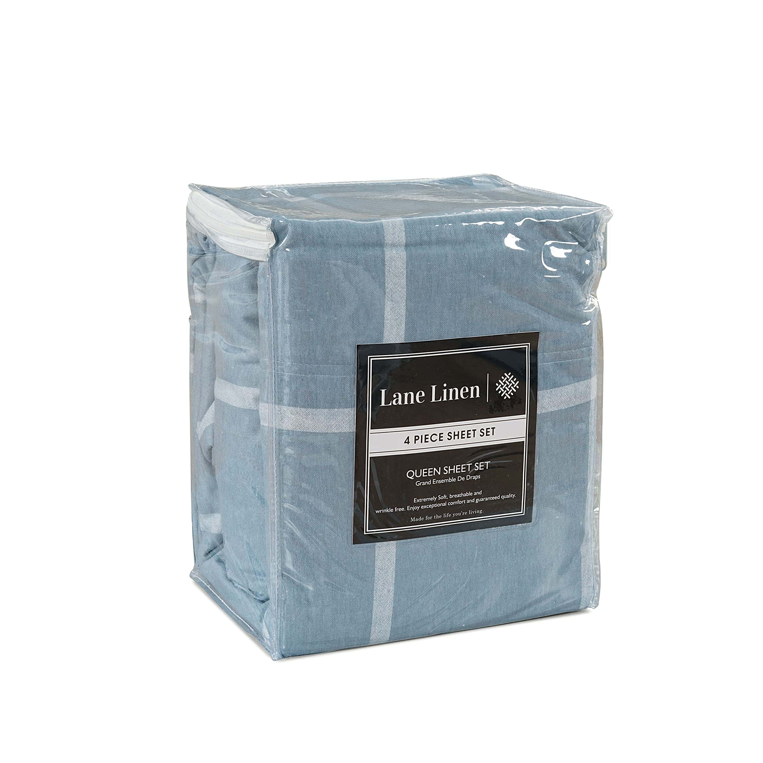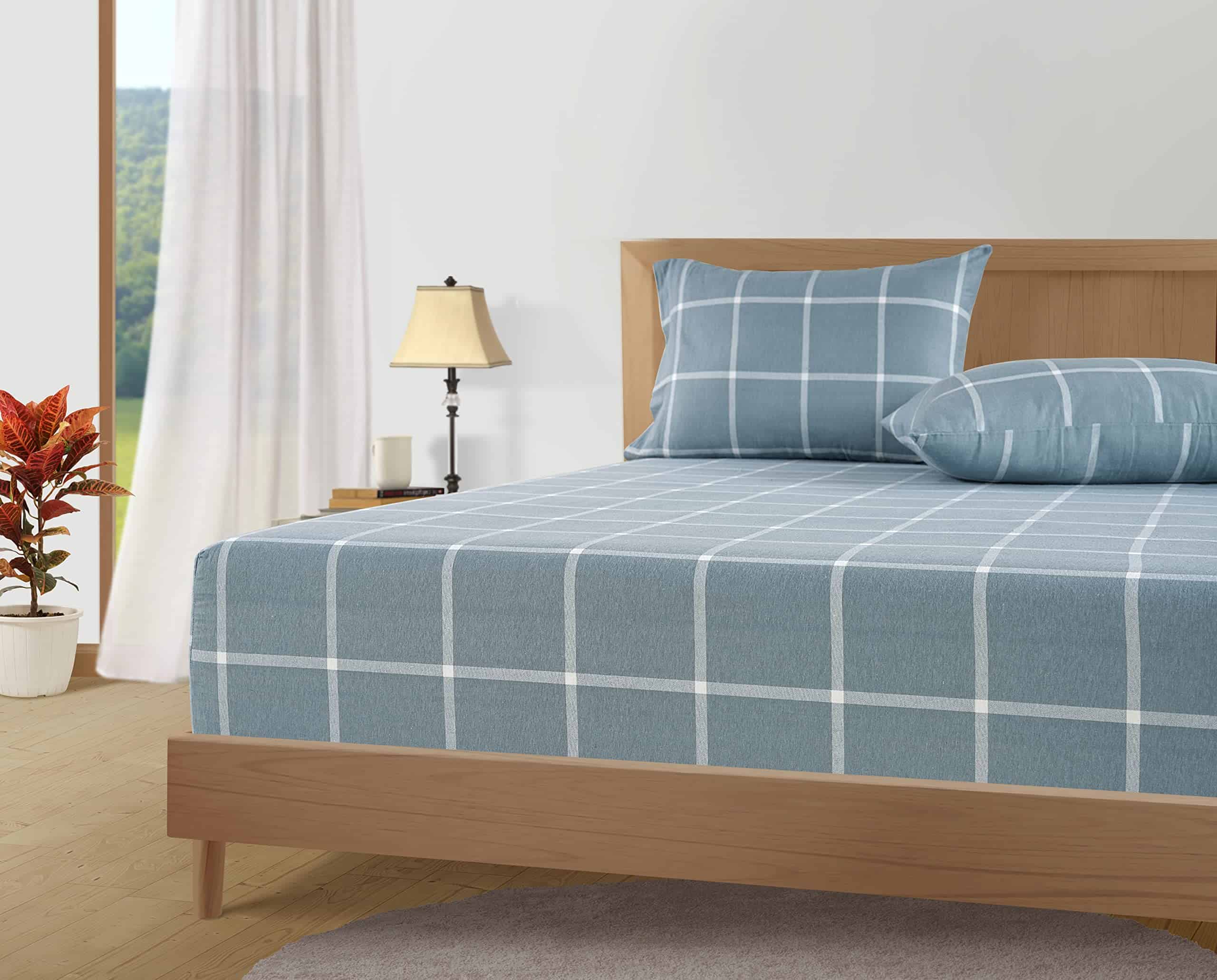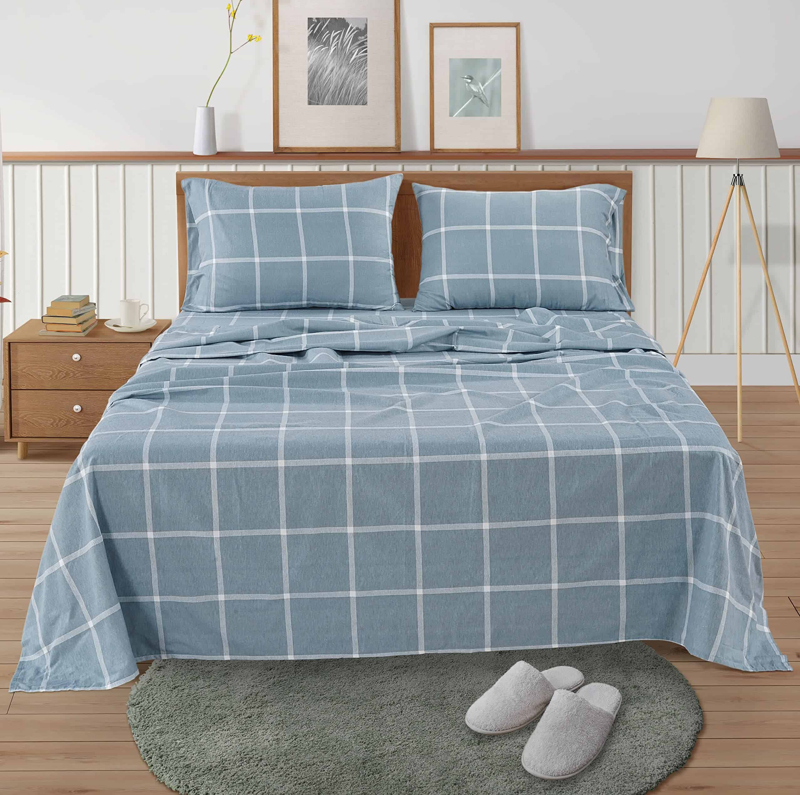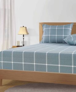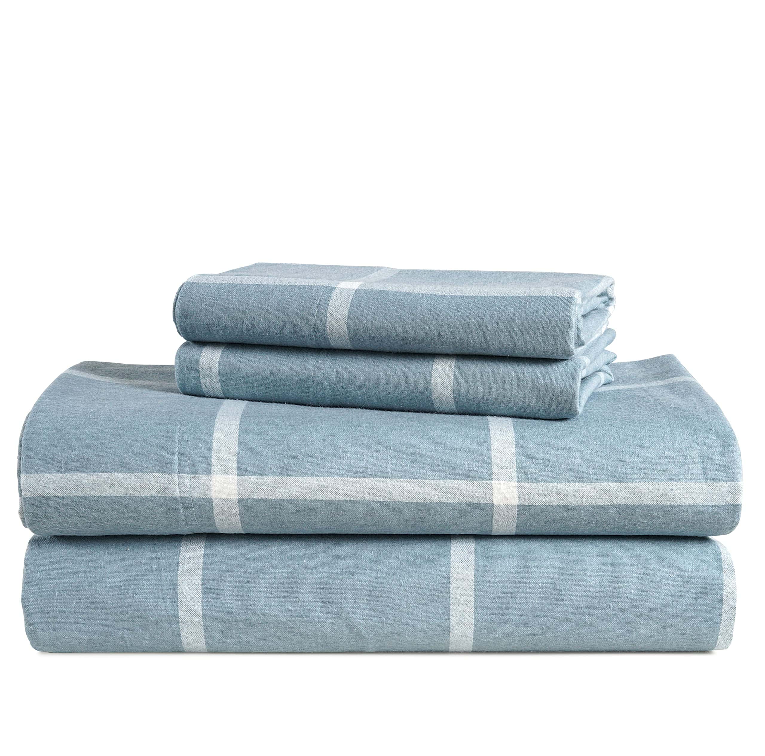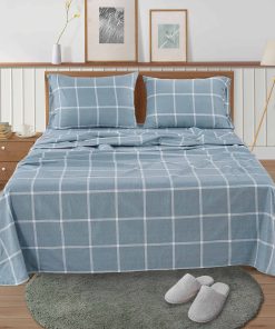 Juego de Sábanas de Franela de Algodón LANE -Azul Rayas Blan