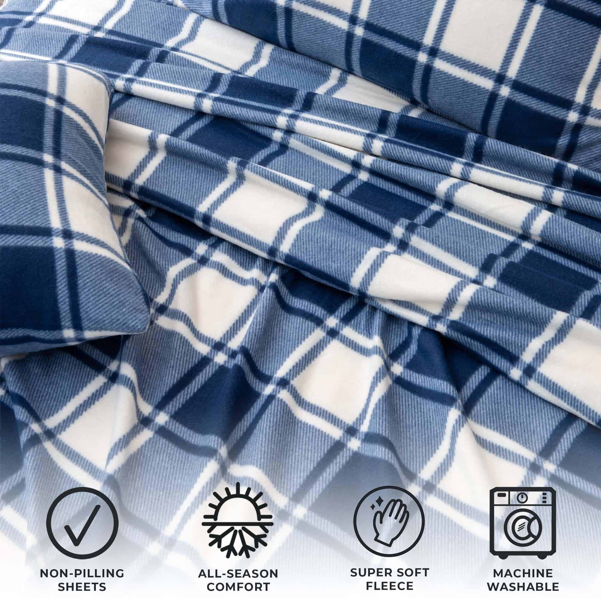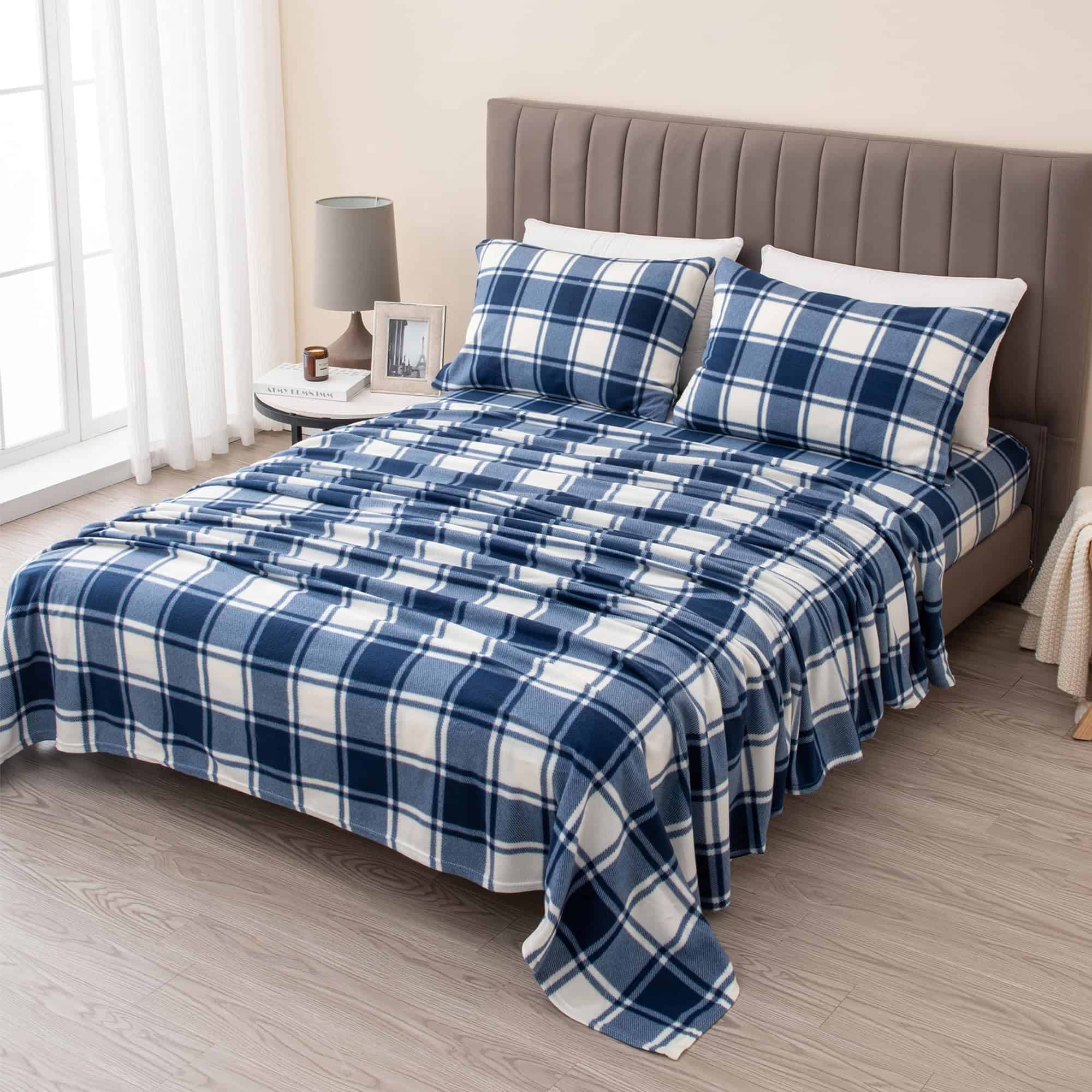 1. Sábanas de franela extra mullidas: Esta tela de franela cepillada es tan suave y acogedora, ofrece una sensación transpirable y ligera. Perfecto para las noches de invierno sin sentirse demasiado caliente. Con técnicas de fabricación que minimizan la formación de bolitas, estas sábanas te durarán muchos lavados.