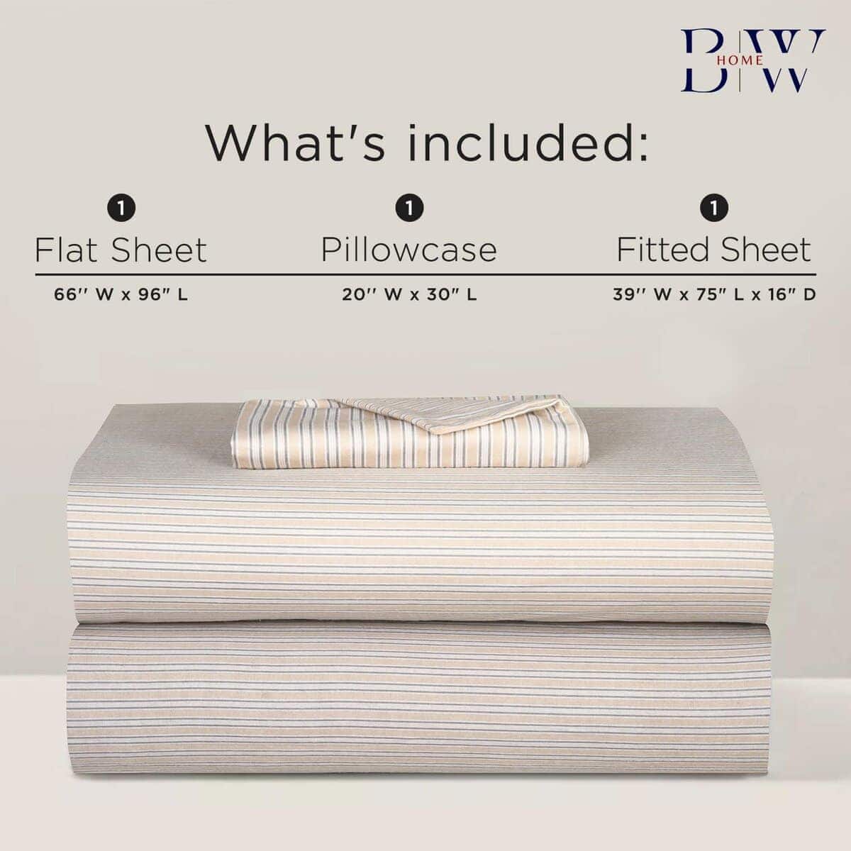 Size – TWIN 3 Piece Sheet Set Includes: Flat Sheet: 66″ W x 96″ L; Fitted Sheet: 39″ W x 75″ L x 16″ D (fits up to 16″ mattress); Pillow Case: 20″ W x 30″ L, Deep pocket fitted sheet with elastic all around (Fits snugly up to 16 mattress).