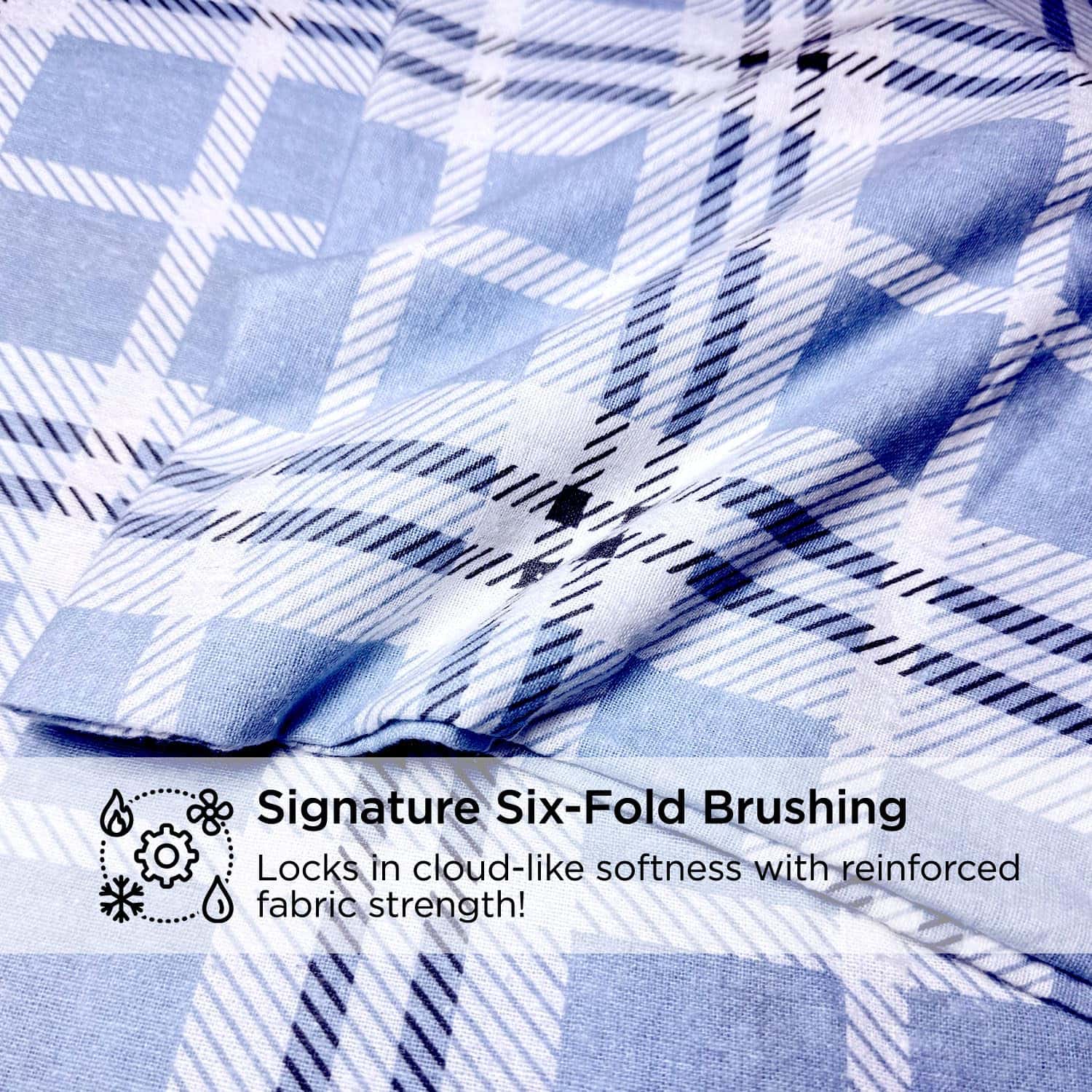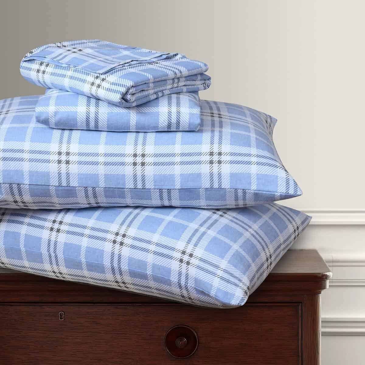 1. Azul Cuadros: El Juego de Sábanas de Franela Estampado en Azul Cuadros, una adición acogedora y elegante a tu colección de ropa de cama. Este juego incluye un conjunto de tres piezas, cada una adornada con un encantador patrón de cuadros azules y blancos.