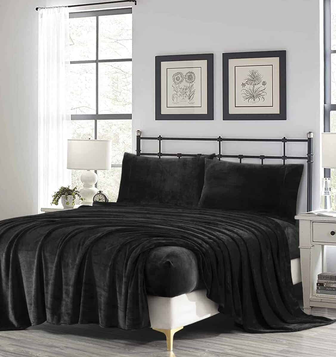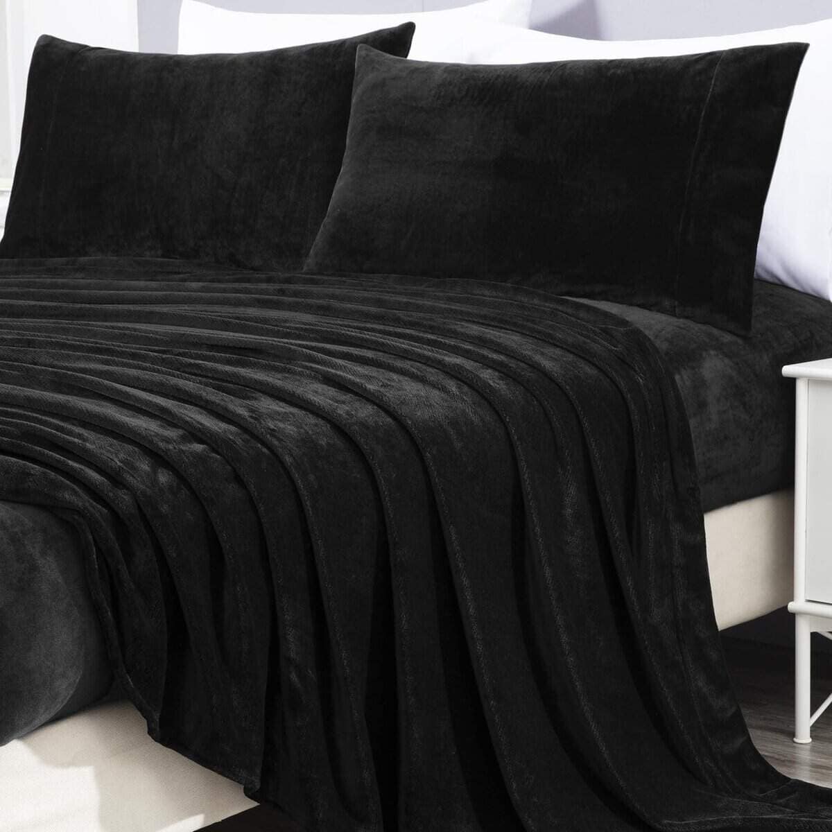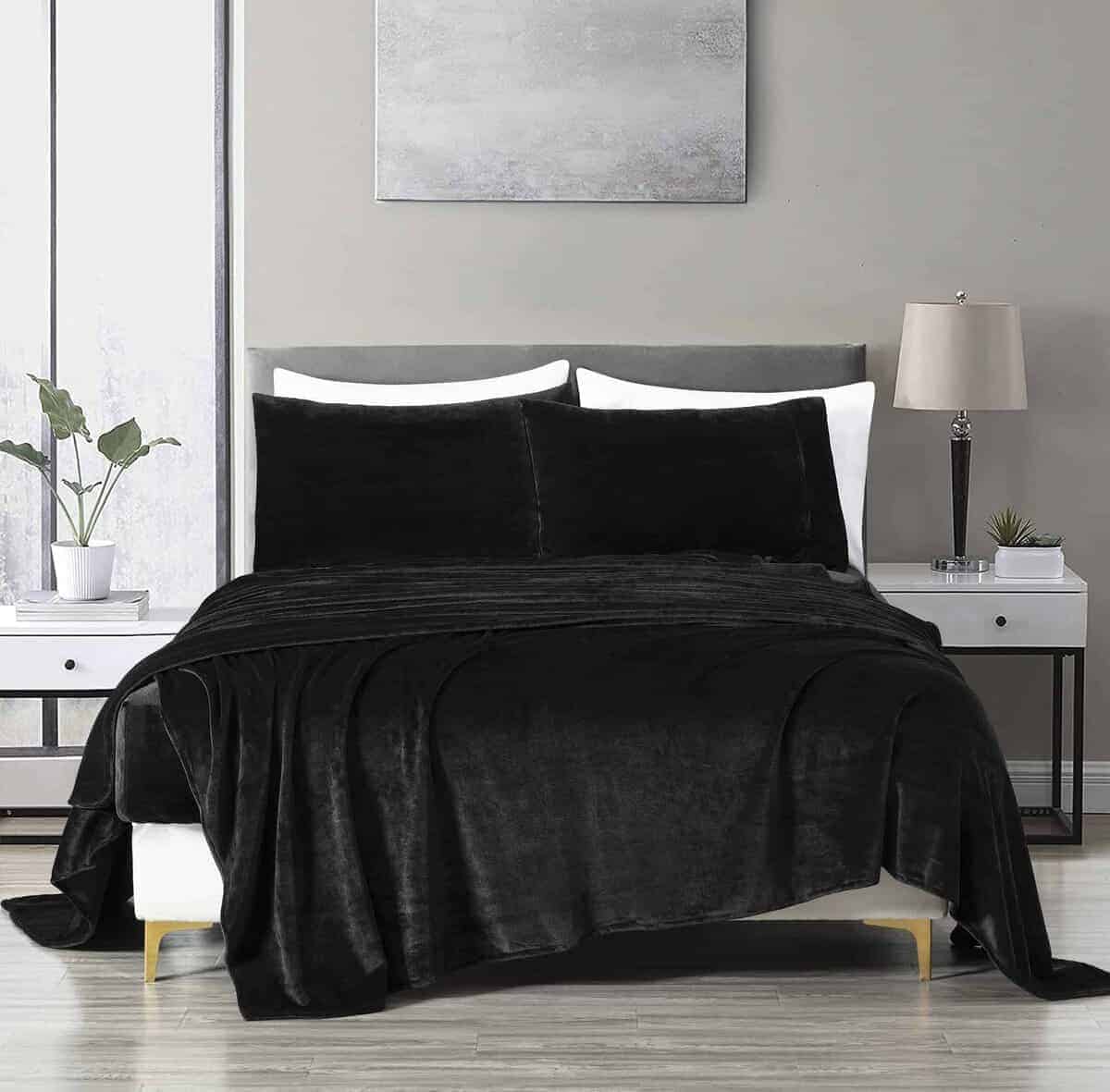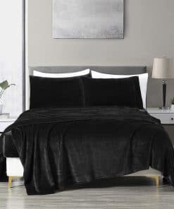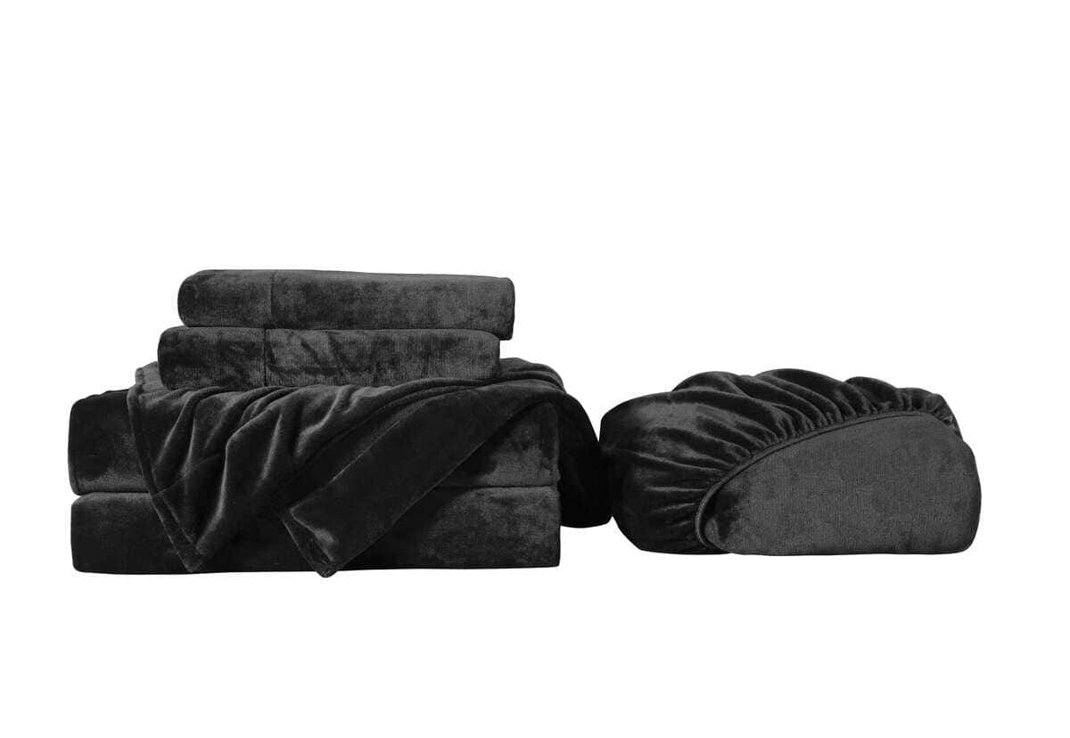 Juego de sábanas de franela extra suave -Negro