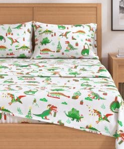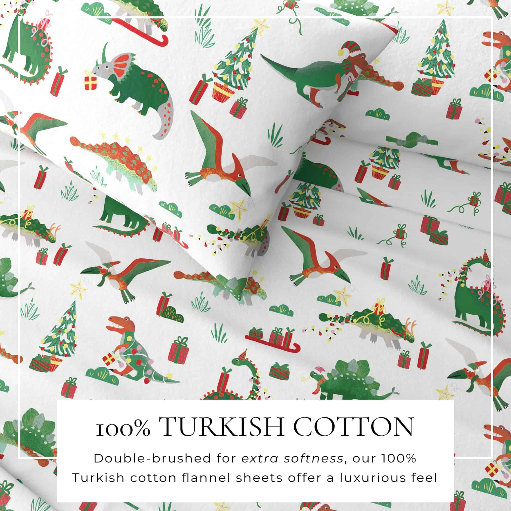 Juego de sábanas de franela Great Bay Home -Navidad Dinosaur