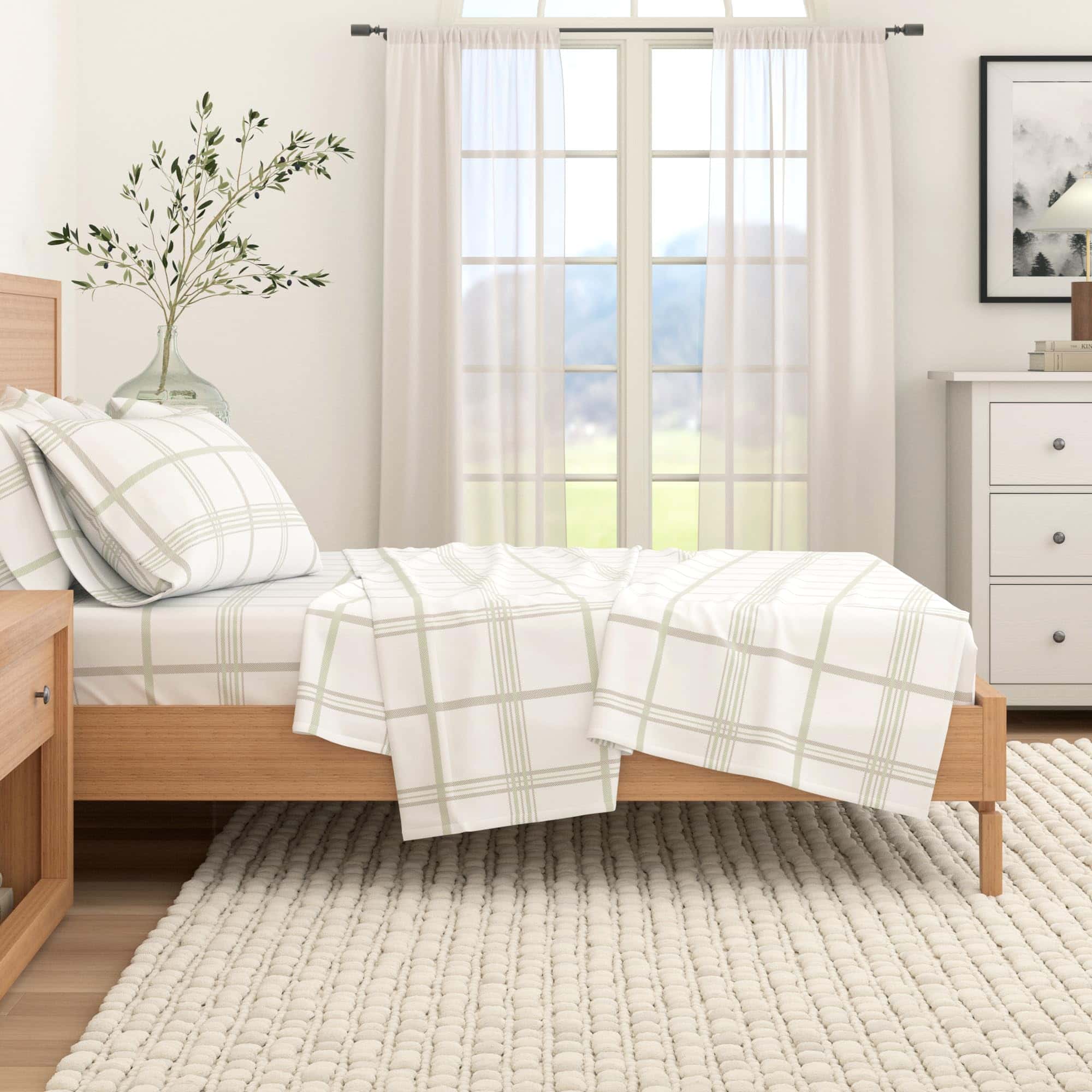 Estas sábanas de franela de Great Bay Home son la adición perfecta para tu hogar, especialmente si te gustan los estampados rústicos y acogedores. Hechas con 100% algodón turco, estas sábanas ofrecen una sensación de suavidad y comodidad incomparables. Elaboradas bajo condiciones éticas y respetuosas con el medio ambiente, puedes descansar tranquilo sabiendo que estás cuidando de ti mismo y del planeta. El juego de sábanas incluye una sábana bajera elástica, una sábana plana y dos fundas de almohada estándar, todo en un hermoso estampado de rombos en tonos oliva que seguramente combinarán con tu decoración. Añade un toque de calidez y estilo a tu dormitorio con estas sábanas de franela de calidad premium.